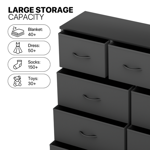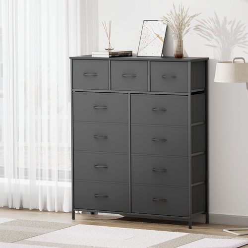 11-Drawer Black Fabric Dresser - Versatile Storage