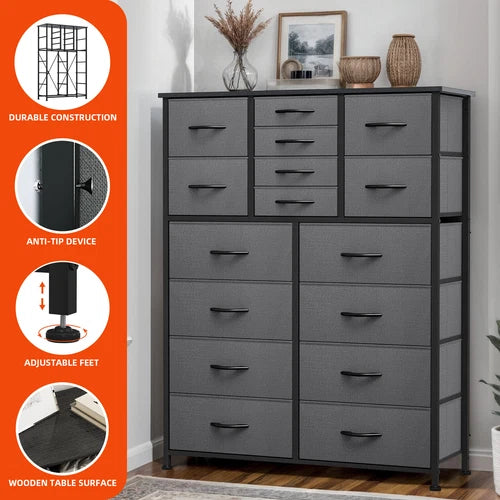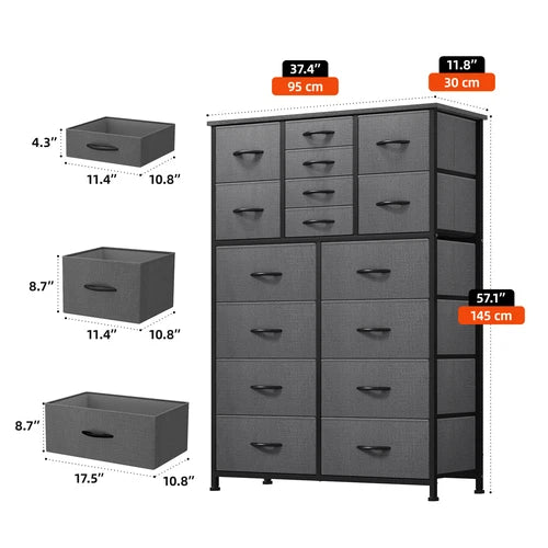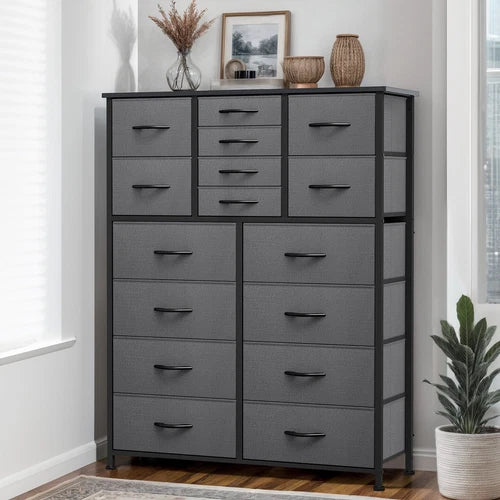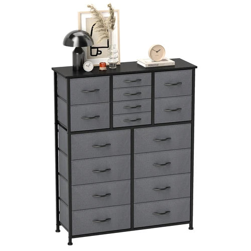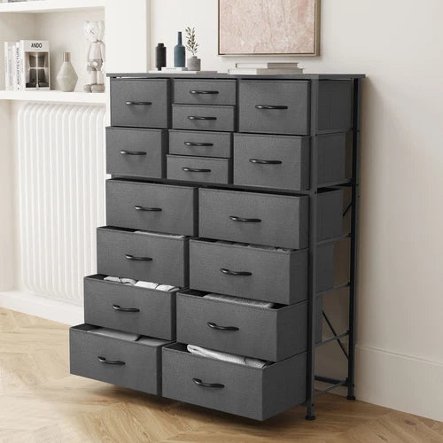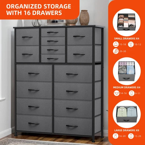 ✨ What is it - Introducing the premium 16-Drawer Dresser Tower, a stylish and functional storage solution for your bedroom or living room! Made with high-quality gray fabric and a sturdy steel frame, this versatile cabinet offers ample space to organize your belongings and declutter your space with elegance.