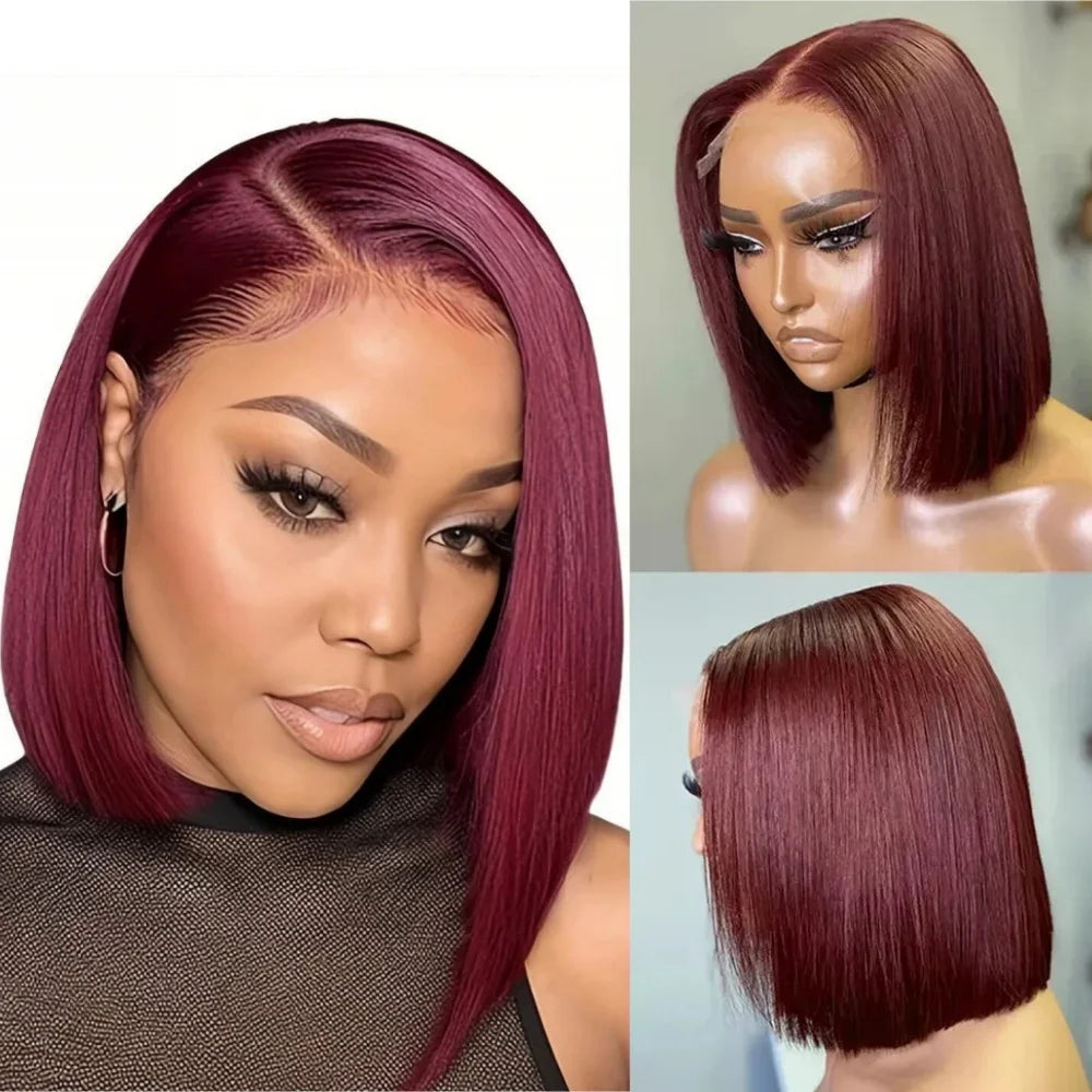 13x4 Wear and Go Glueless Bob Wig Human Hair Straight Bob Wigs Human Hair 100% 99J Red Colored 7x5 Glueless Wigs Ready to Wear