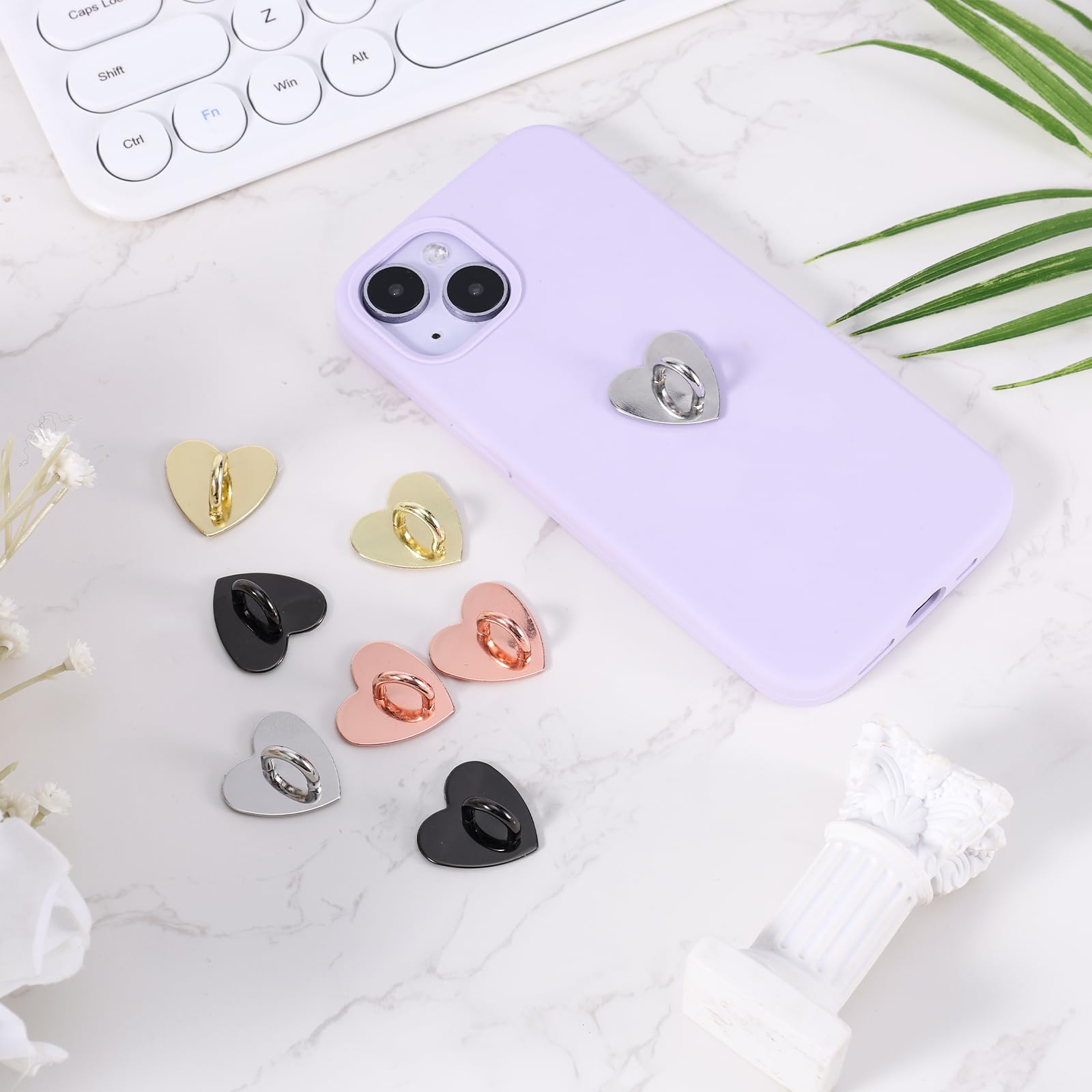 8pcs Heart Cell Phone Ring Holder, Metal Finger Ring Stand Heart-Shaped Sticky Phone Grip Loop Adhesive Phone Charm Hook for Mobile Phone Case Pad Tablet DIY Accessories