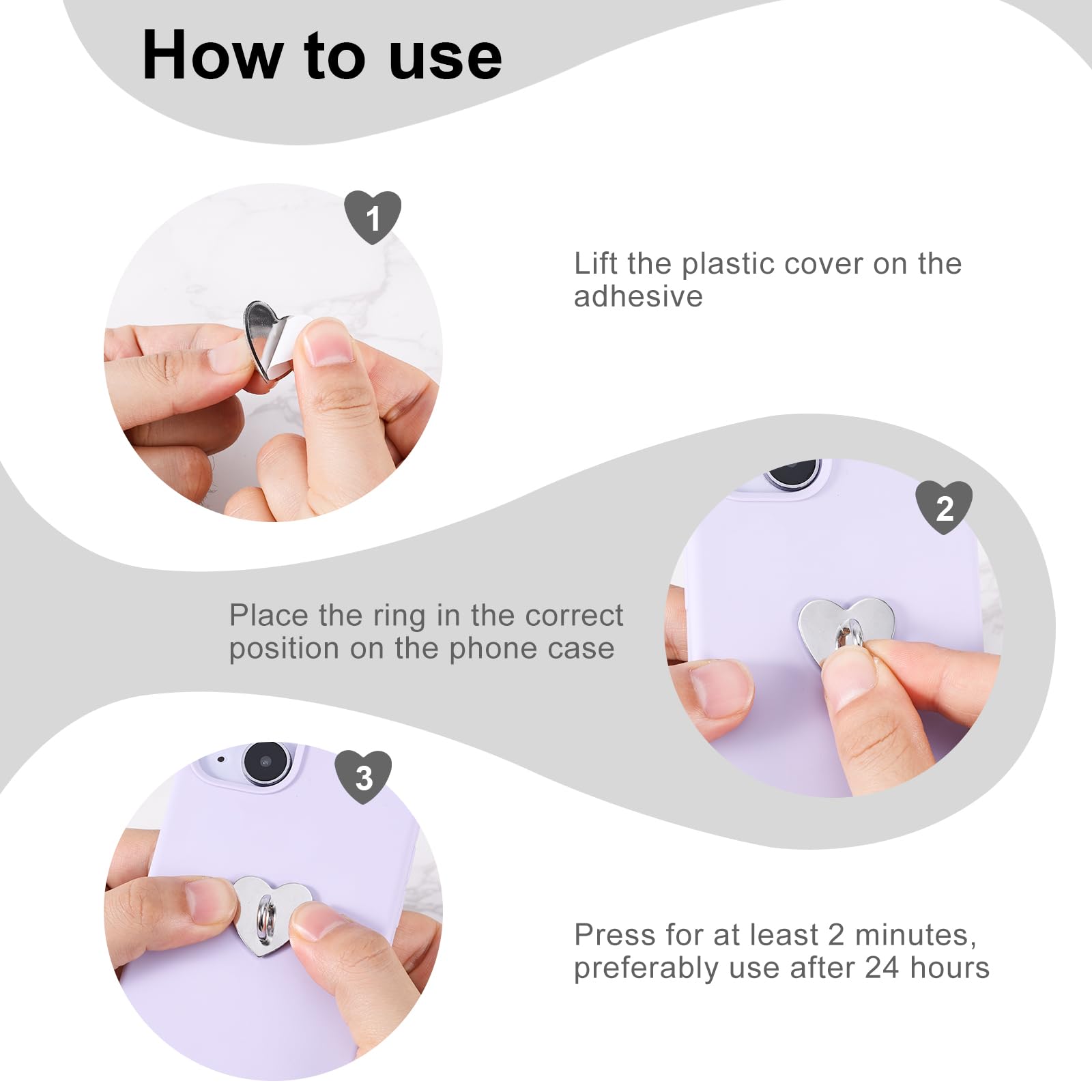 • Product Size: The size of each phone grip ring is about 2.5x2.5x1.2cm/1x1x0.47in, and the appearance is designed in heart shape, which is beautiful and exquisite, making your phone case distinctive and eye-catching.