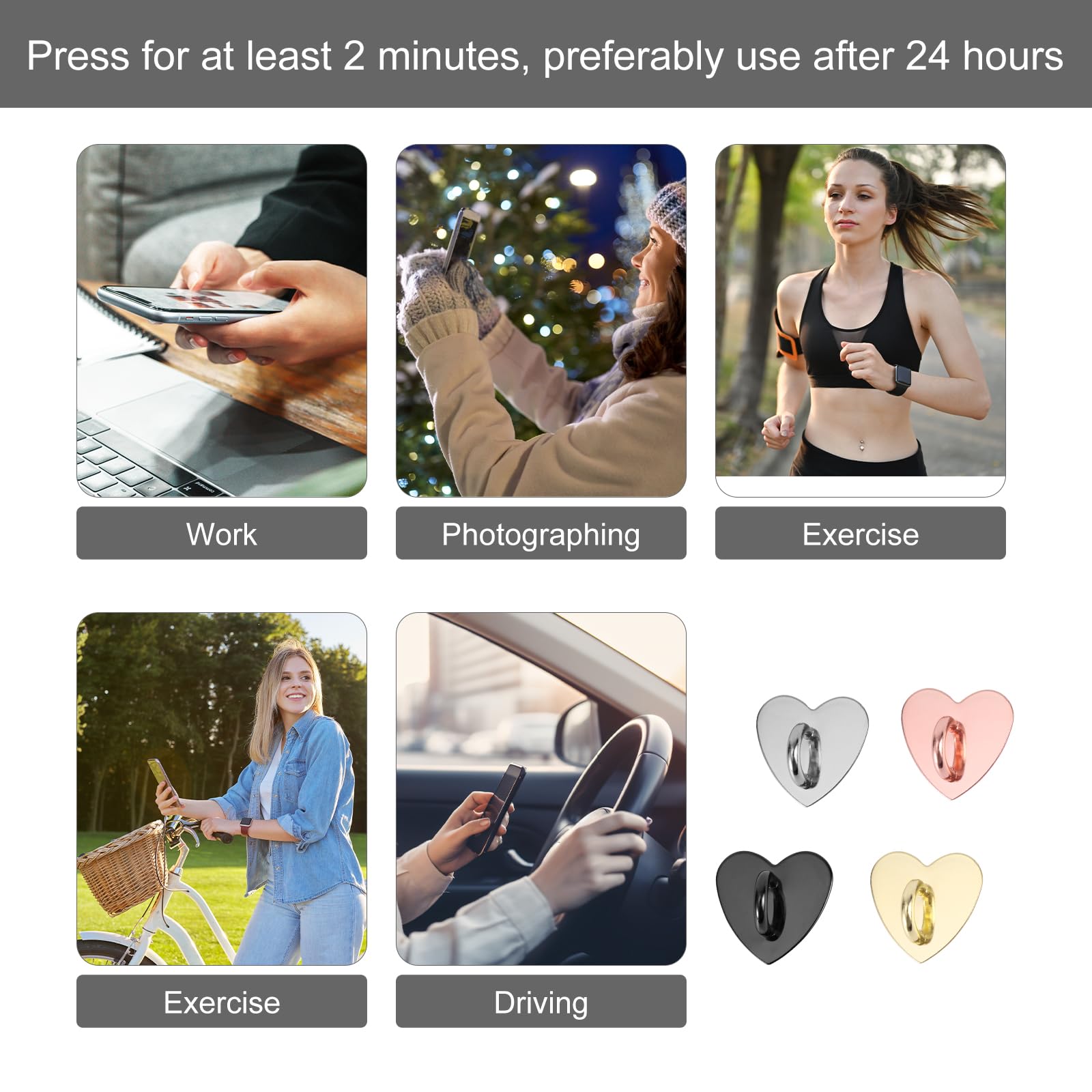 • Package Content: You will receive 8 pieces of heart cell phone ring holders, 2 each in rose gold, black, gold, and silver. The quantity is enough to meet your use and replacement needs.