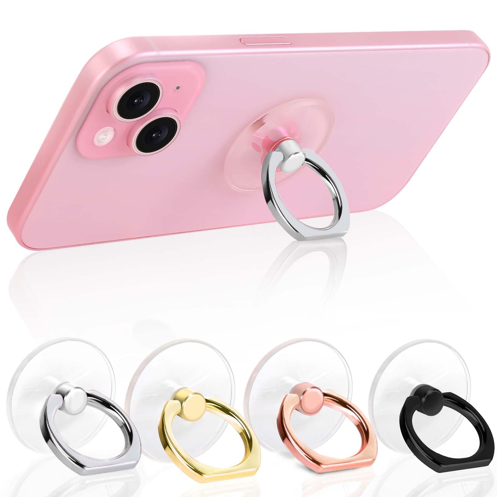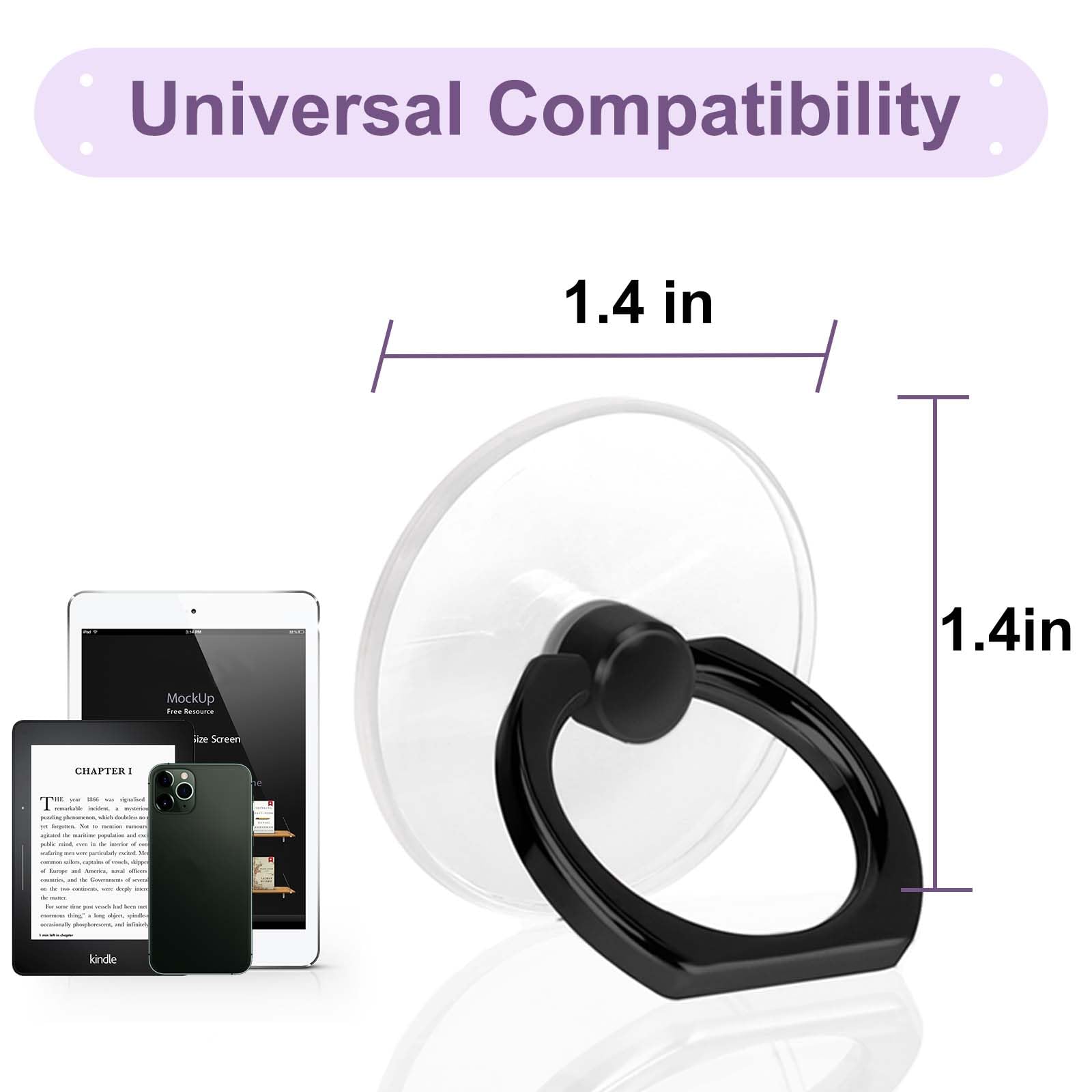 • Clear Phone Ring Holder Design: The ring holder for cell phone is made of transparent Acrylic, the phone ring holder finger kickstand perfect fit for any cell phone with or without case cover. Cell phone ring keeps your phone original feature design without affecting the exterior.