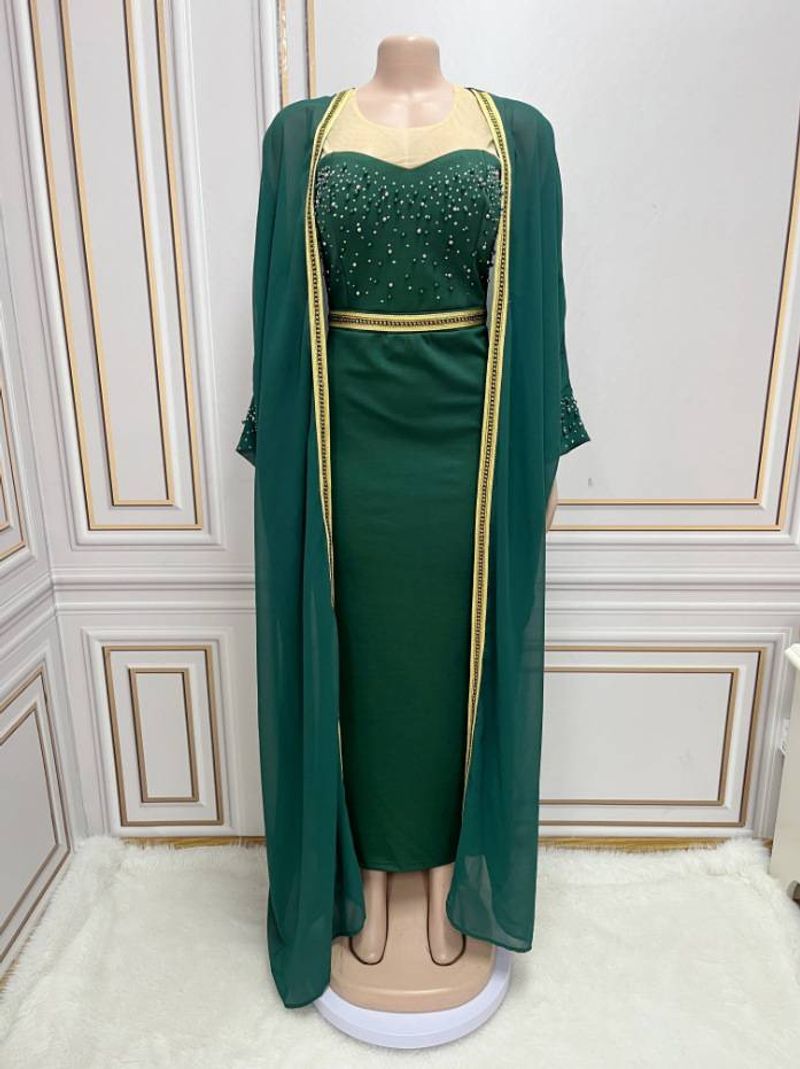 Muslim Robes For Women Hot Sale Diamond Light Luxury Dress Suit Mesh Beaded Two-piece Dress