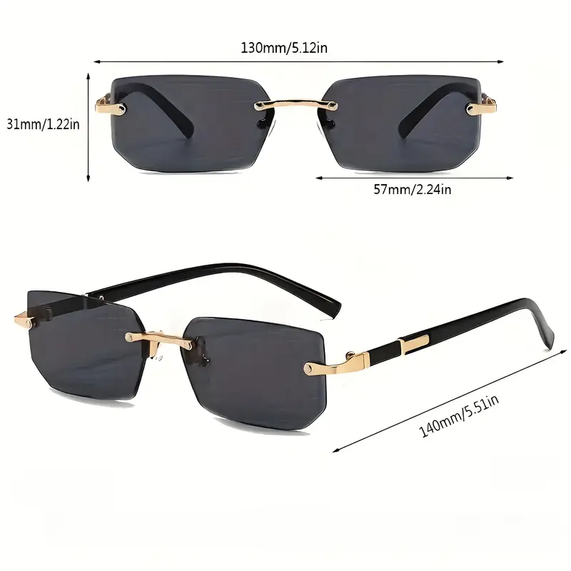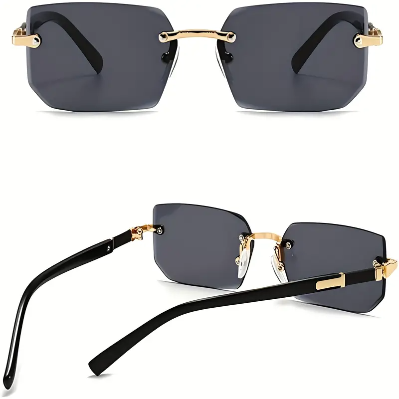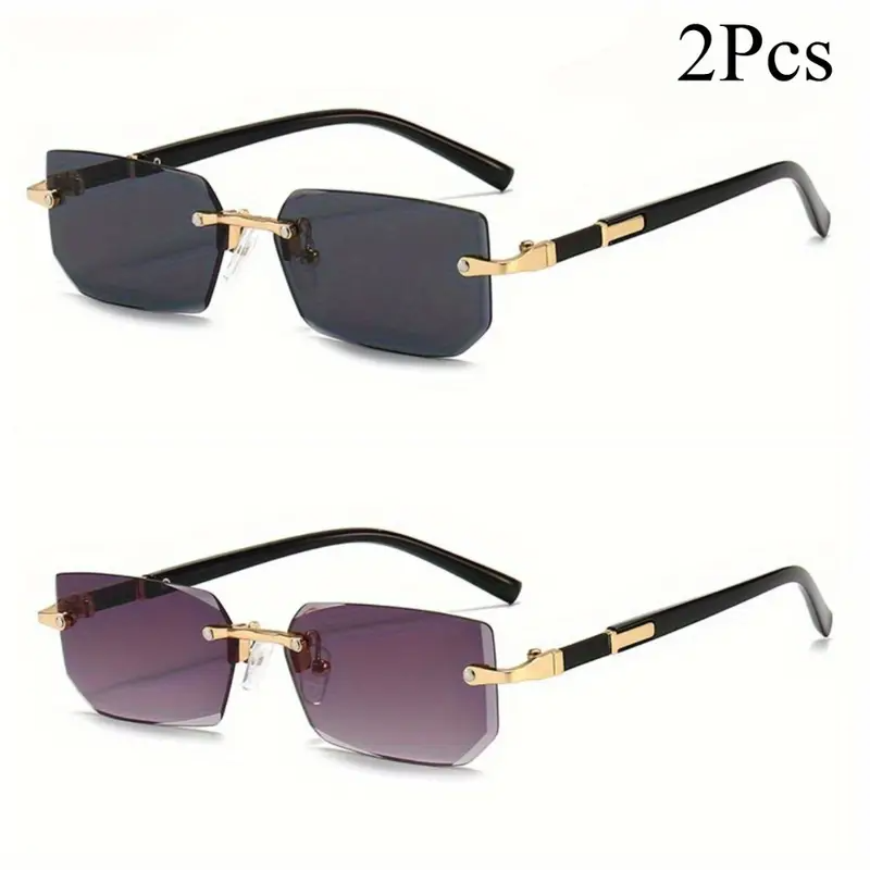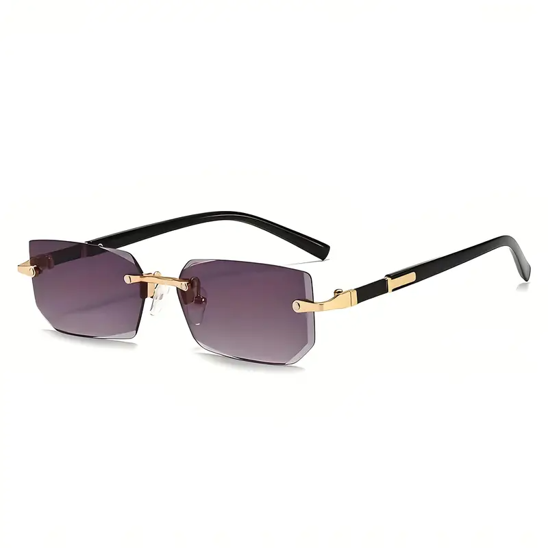 1/2 Pair Lightweight Rimless Fashion Glasses, Gradient Lenses (Black to Purple), Gold Accents, Stylish & Durable, Perfect for Casual Wear, Everyday Fashion Eyewear | Gradient Lens Style | Durable Glasses