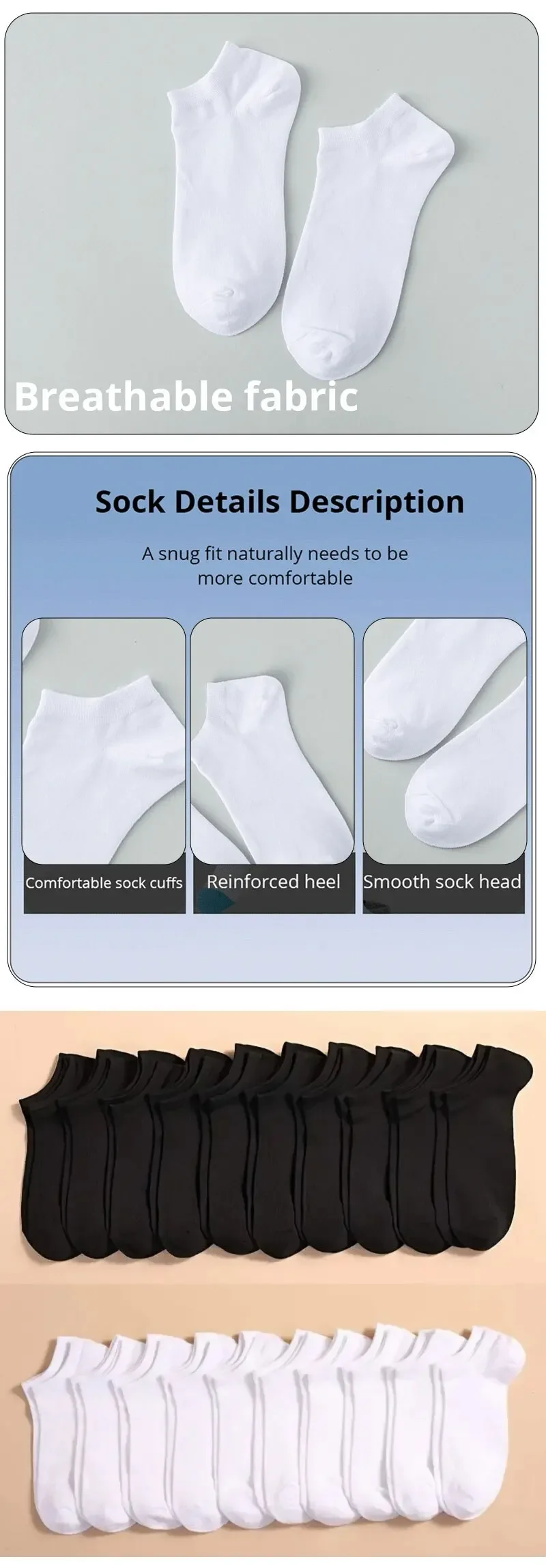 10Pairs Plain Color Unisex Casual Boat Socks Thin Breathable Comfy Anti-odor Sweat-absorbing Low Tube Men Women Ankle Socks