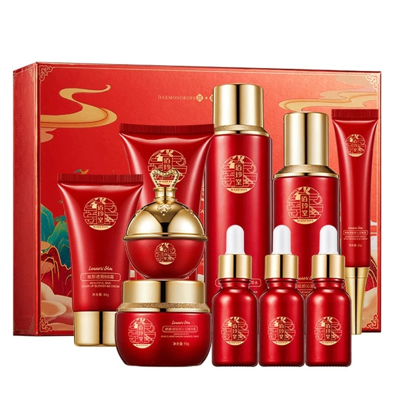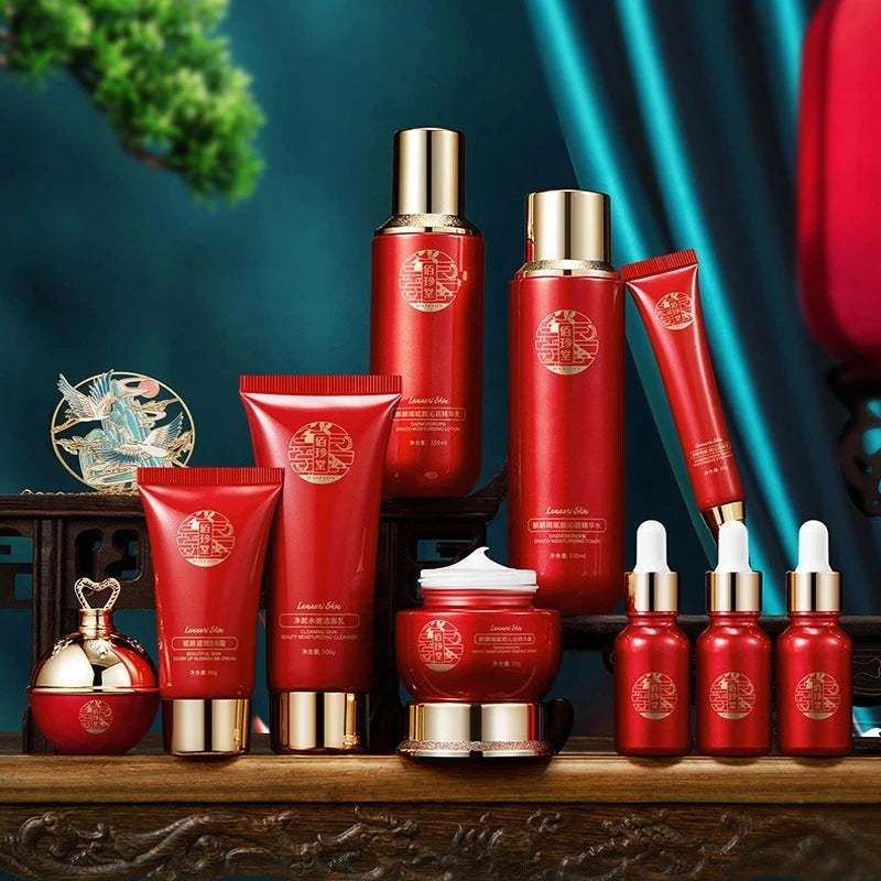 10pcs Face Skin Care Set Dragon Blood Anti-aging Facial Cleanser Face Serum Toner Essence Milk Cream Repair Beauty Skincare Kit