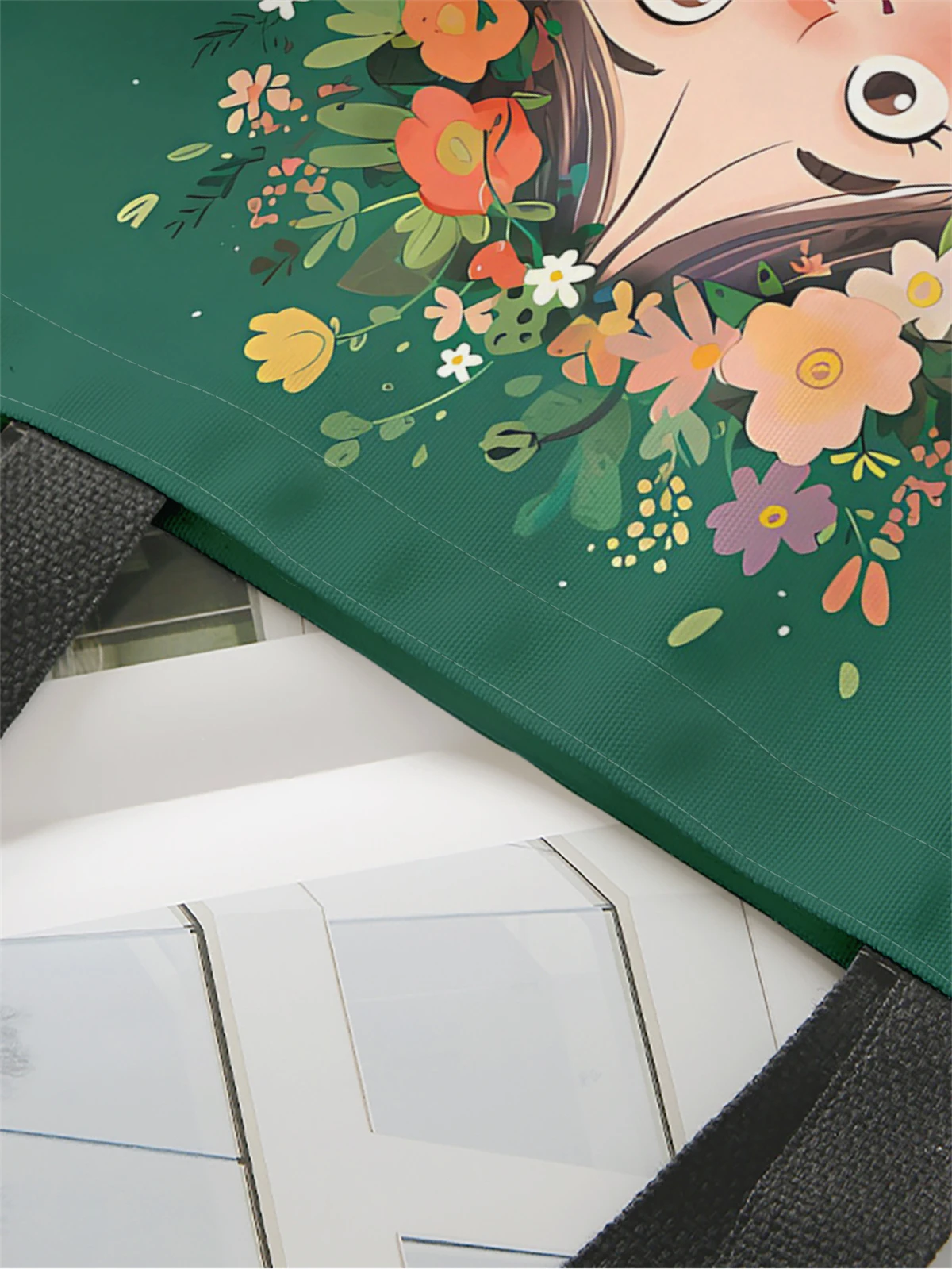 1pc,wreath girl handbag, reusable fashionable handbag, multifunctional handbag, printed canvas shopping bag