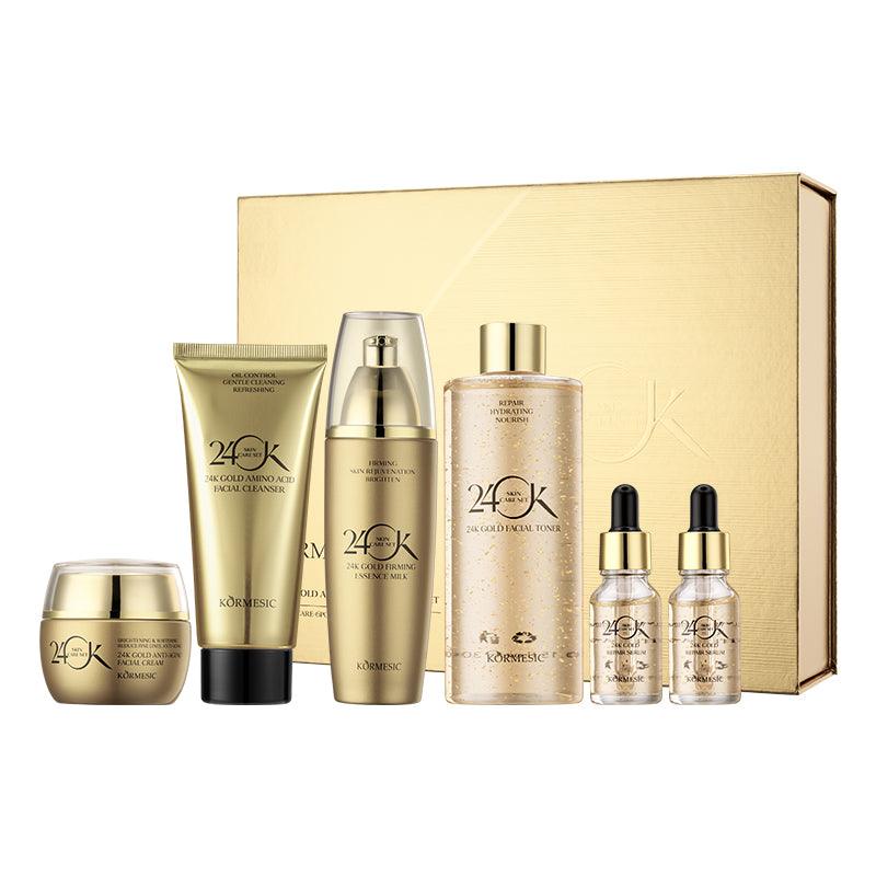 ❥【24k Skin Care Set】This skin care product contains 24K essence, which can tighten the skin and moisturize it. The ingredients in this set of skin care products provide hydrating, smooth and firming skin care. The ingredients are skin-friendly and penetrate from the bottom of the skin, making the skin anti-aging and reducing fine lines.