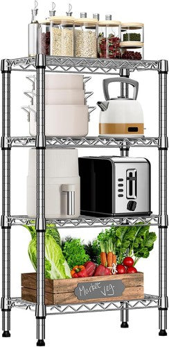 🌟 What is it - This 4-tier chrome wire shelving unit is the ultimate solution for optimized organization in your home, garage, or office. Crafted with premium carbon steel, it's designed for durability and efficient storage, making the most of your space with style.