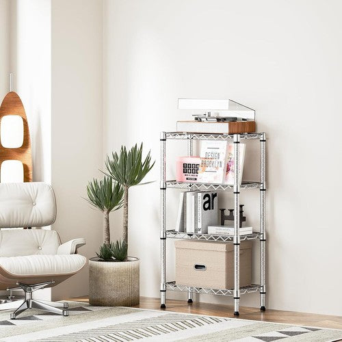 4-Tier Chrome Wire Shelving Unit - Adjustable Storage