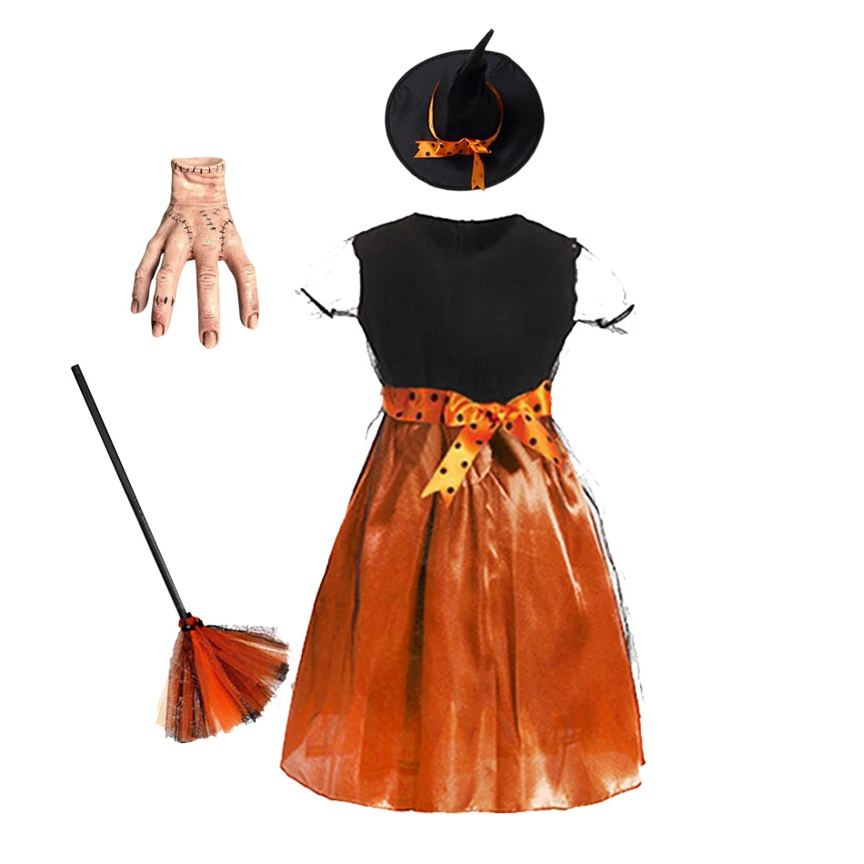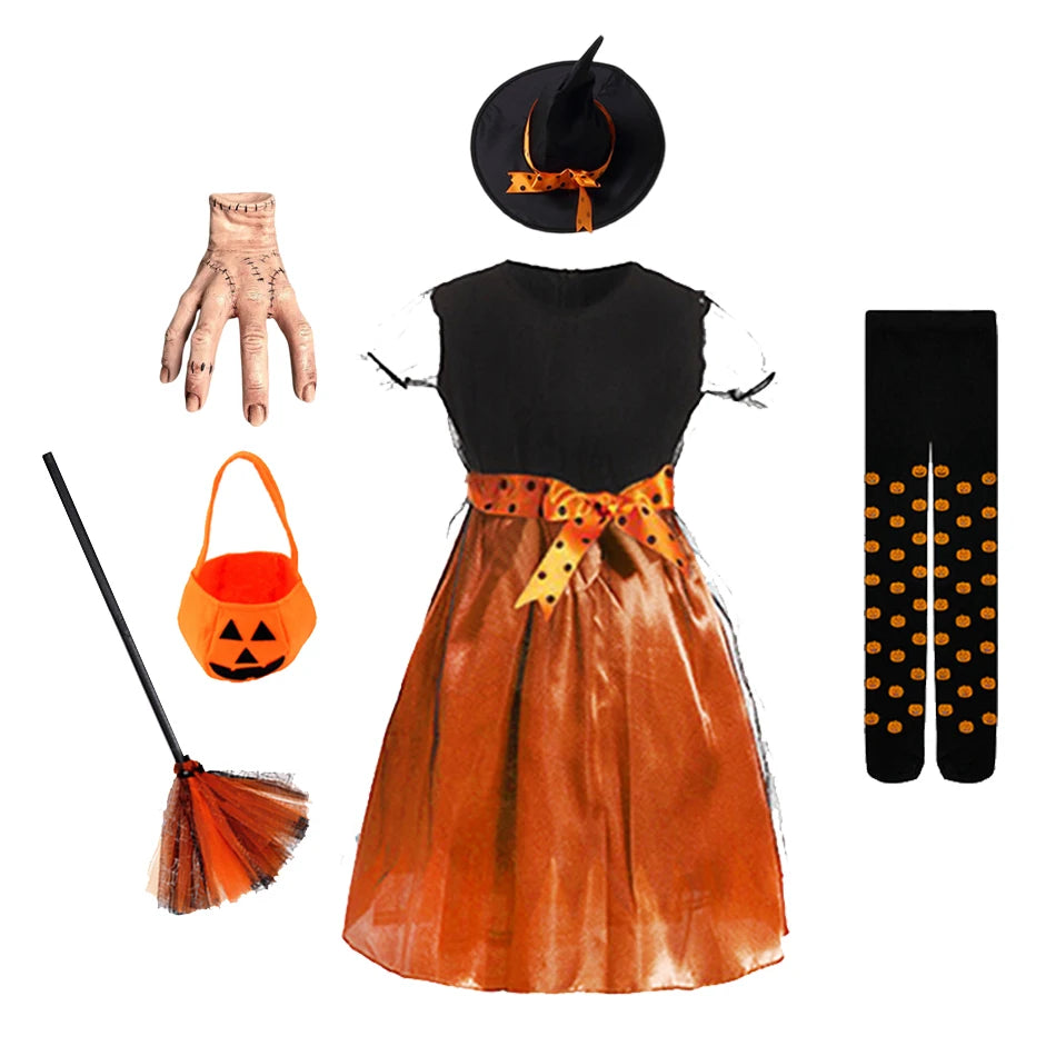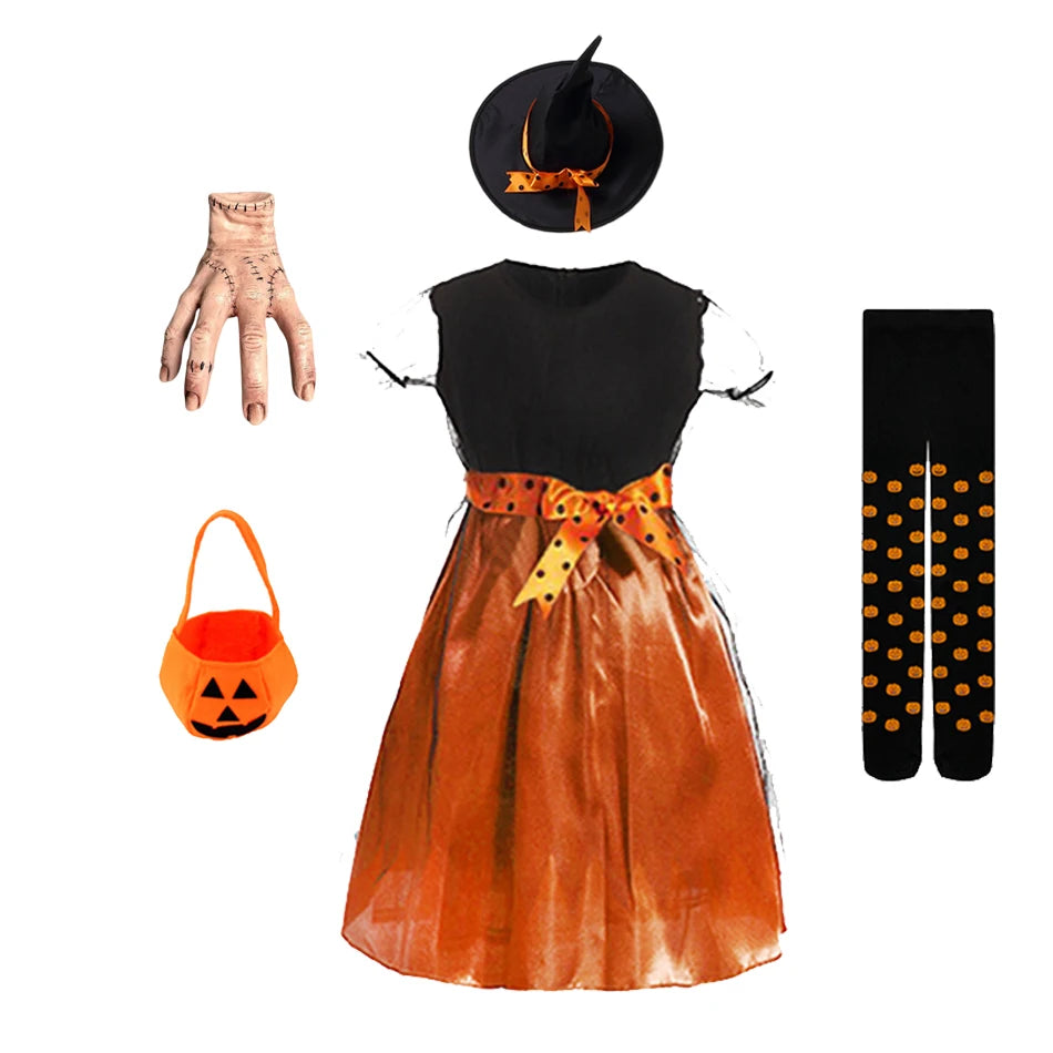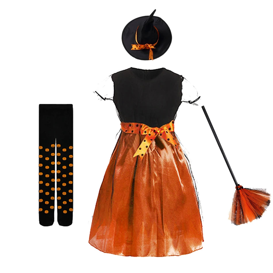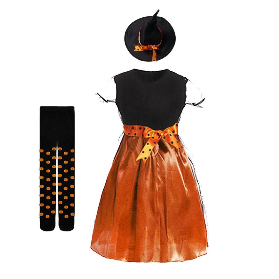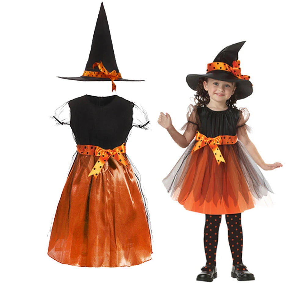 Baby Pumpkin Costume Girls Princess Pageant Dress Children Vampire Performance Elegant Clothes Witch Halloween Romper 1-12 Years