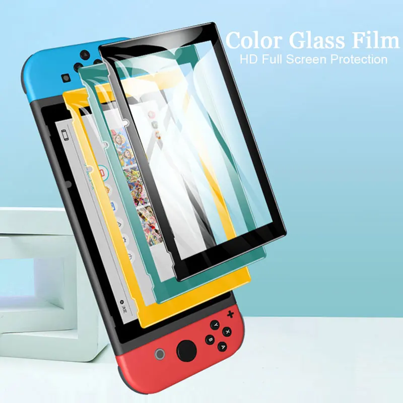 Color Curved Edge Tempered Glass For Nintendo Switch Full Cover Screen Protector NS Lite Game Console Toughened Protective Film