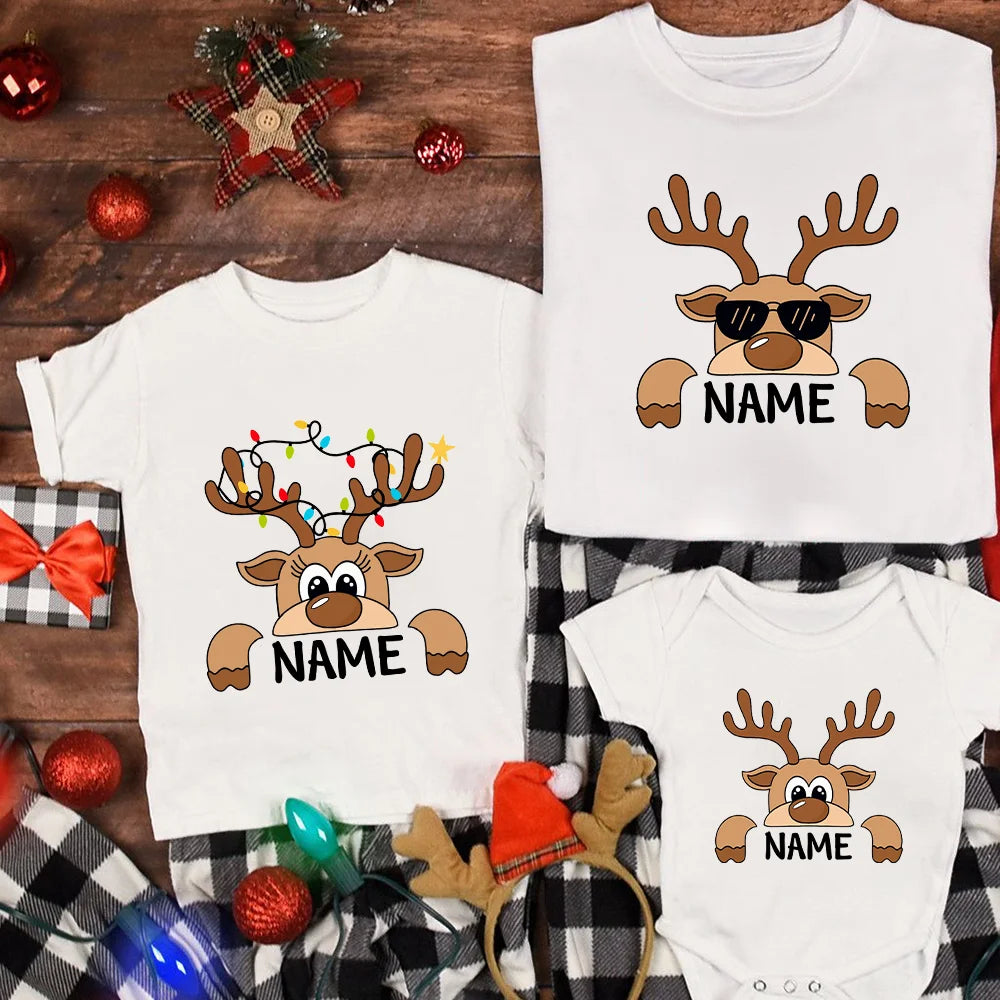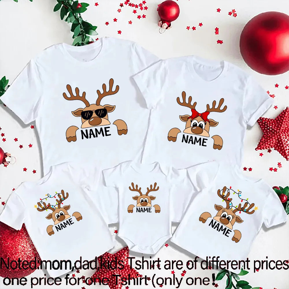 Custom Family Name Clothes Personalized Christmas Family Shirt Christmas Reindeer Print Father Mother Kids T-shirt Baby Romper