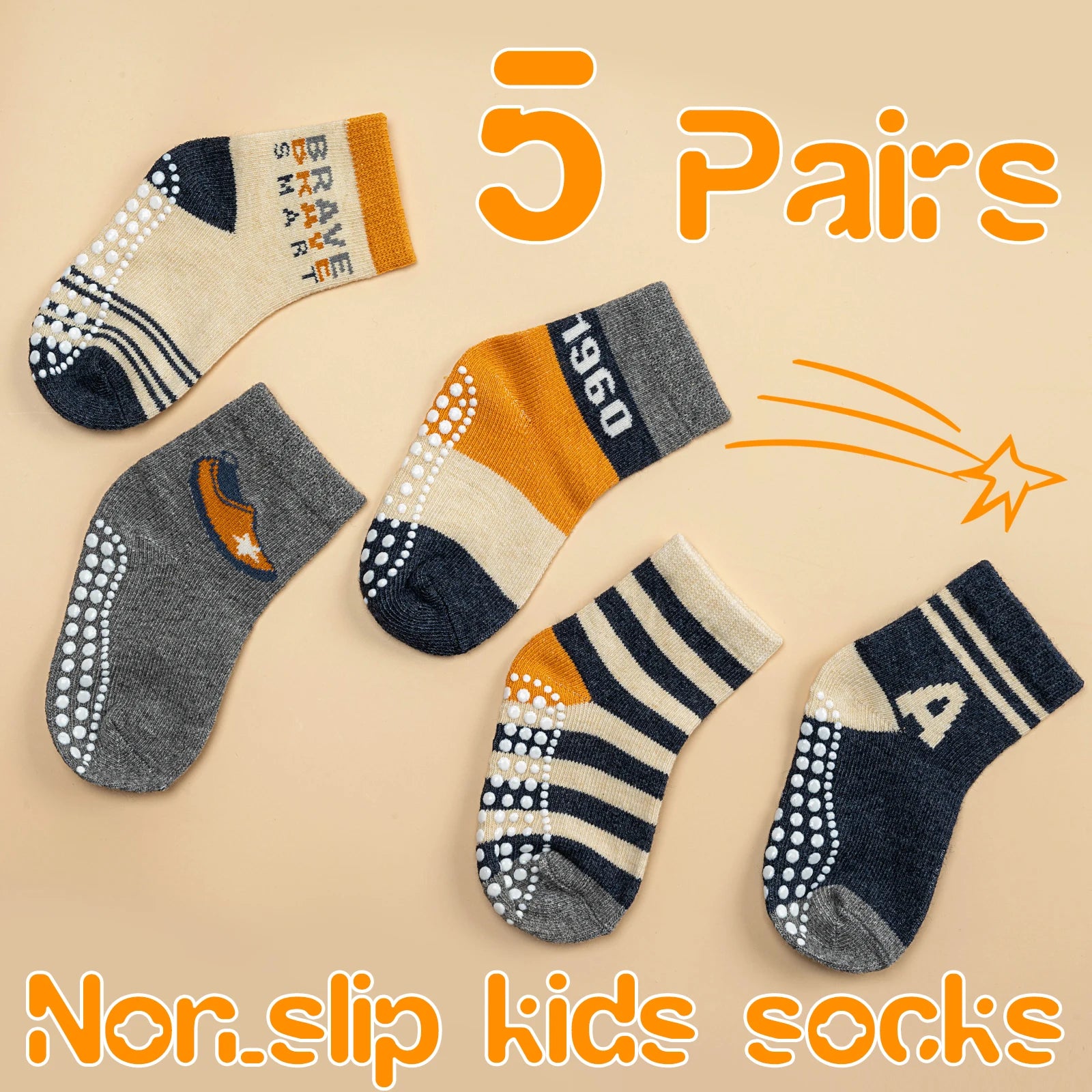 Dropshipping 5 Pairs Non slip Socks Kids Best Selling Gripper Socks Casual Home Socks