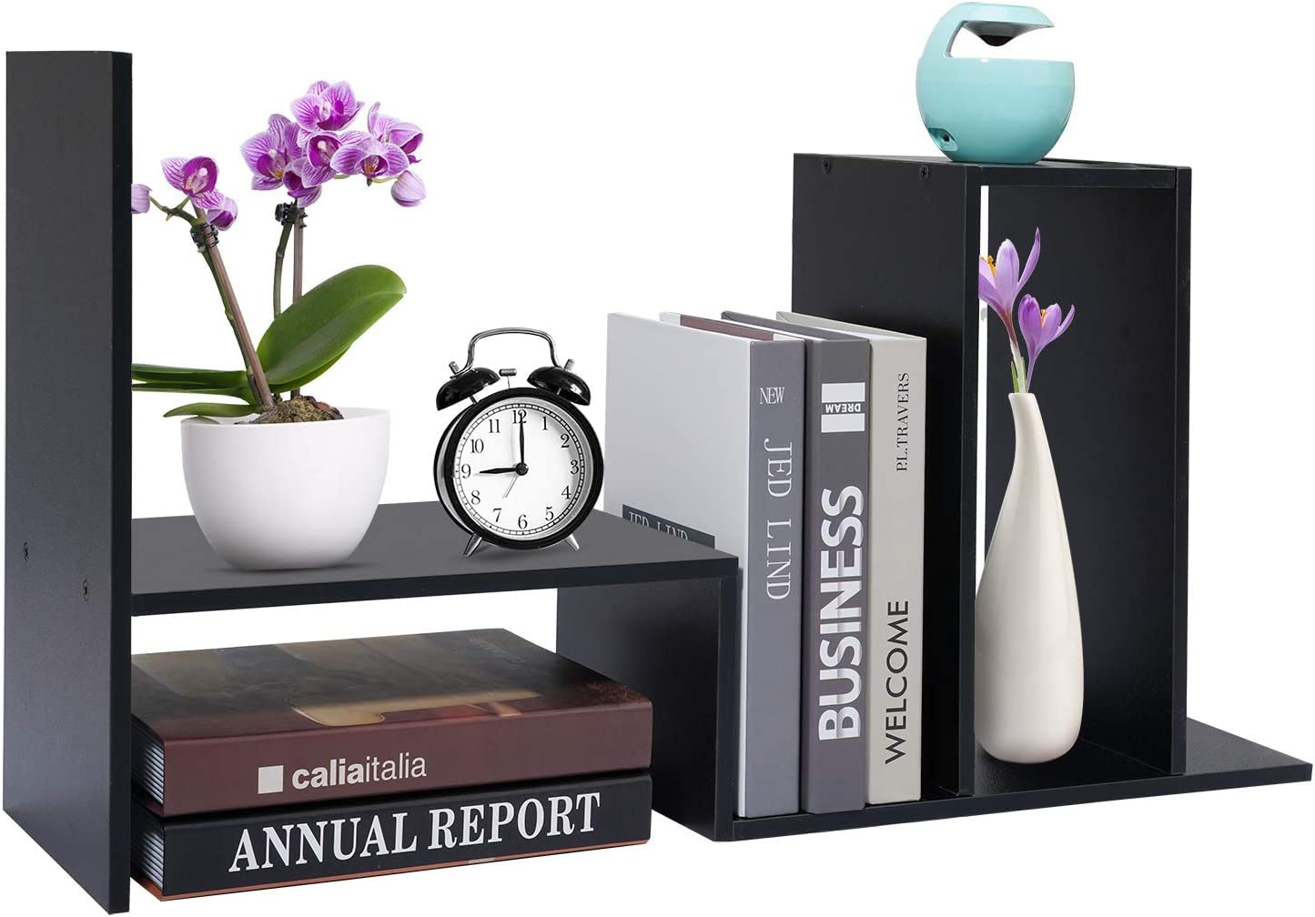 • INNOVATIVE DESIGN: Design with sleek irregular shelves; The desktop bookshelf has 2 main parts, the position and the distance between two parts can be adjusted to meet your different storage needs; Maximize use your space.