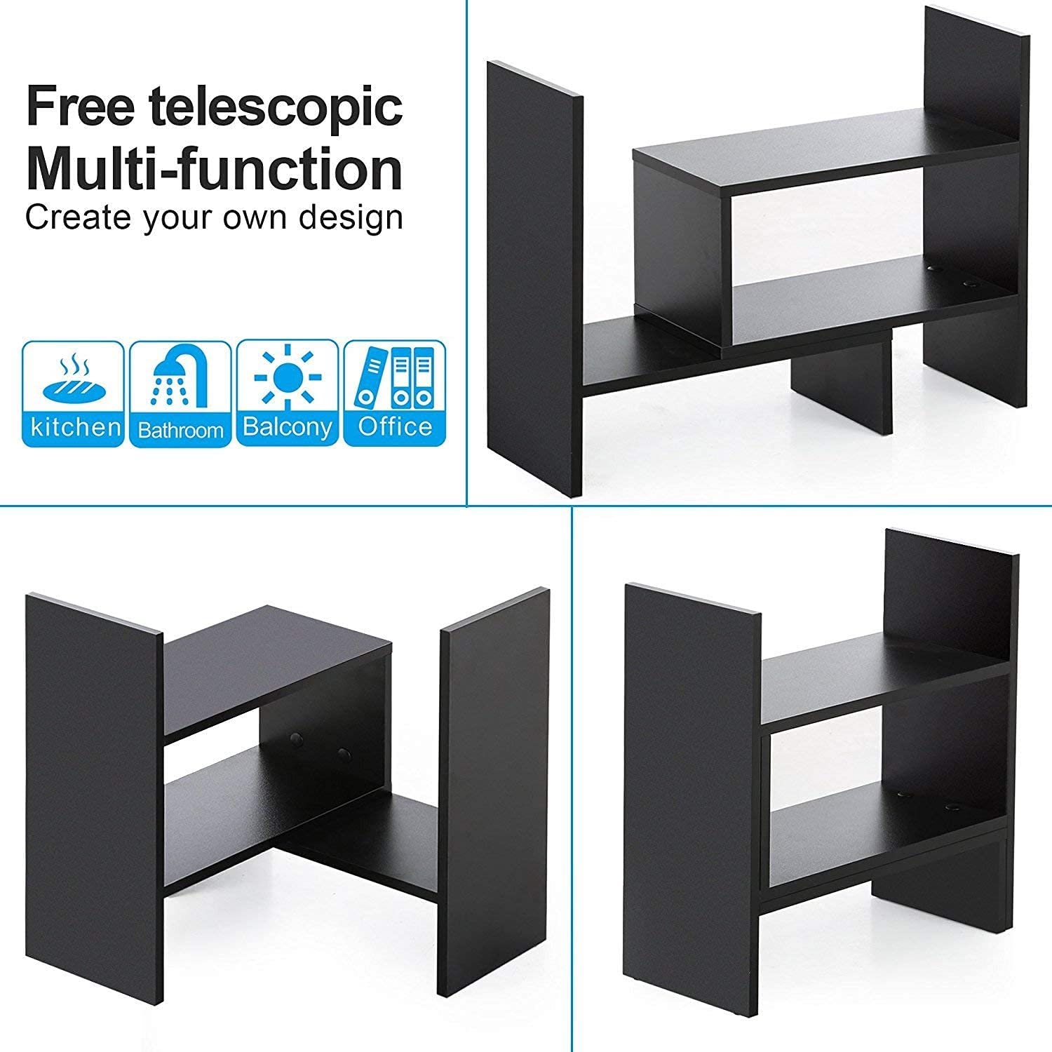 Expandable Wood Desktop Bookshelf Desktop Organizer Office Storage Rack Wood Display Shelf - Free Style Display True Natural Stand Shelf Rack Assembled Bookcase Adjustable Display Rack
