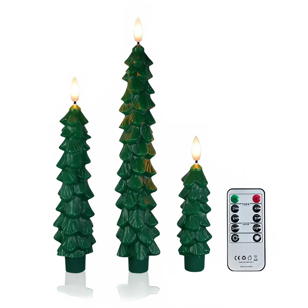 🎄 What is it - Illuminate your holiday with our Flickering Christmas Tree Candles! These innovative flameless taper candles feature a charming Christmas tree design and a lifelike 3D flame wick. Ideal for adding a cozy glow to your festive decor, these battery-operated candles are perfect for fireplace mantels, window sills, and table centerpieces.