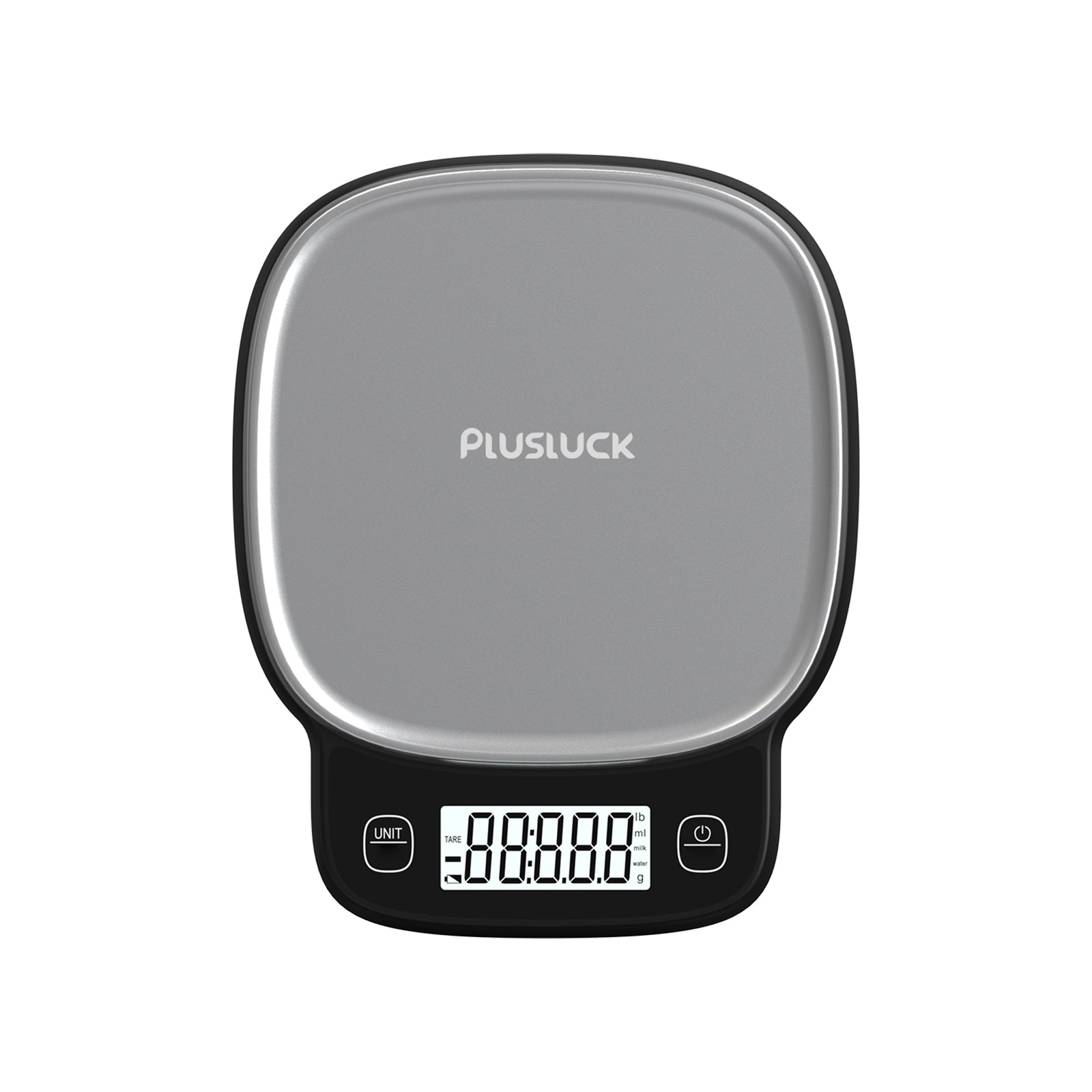 High precision 0.1g digital kitchen scale - 5kg capacity, 304 stainless steel surface, multi-function LCD display, one-click peeling,g/ml(water)/ml(milk)/lb unit conversion, rounded corner design, non-slip foot pad