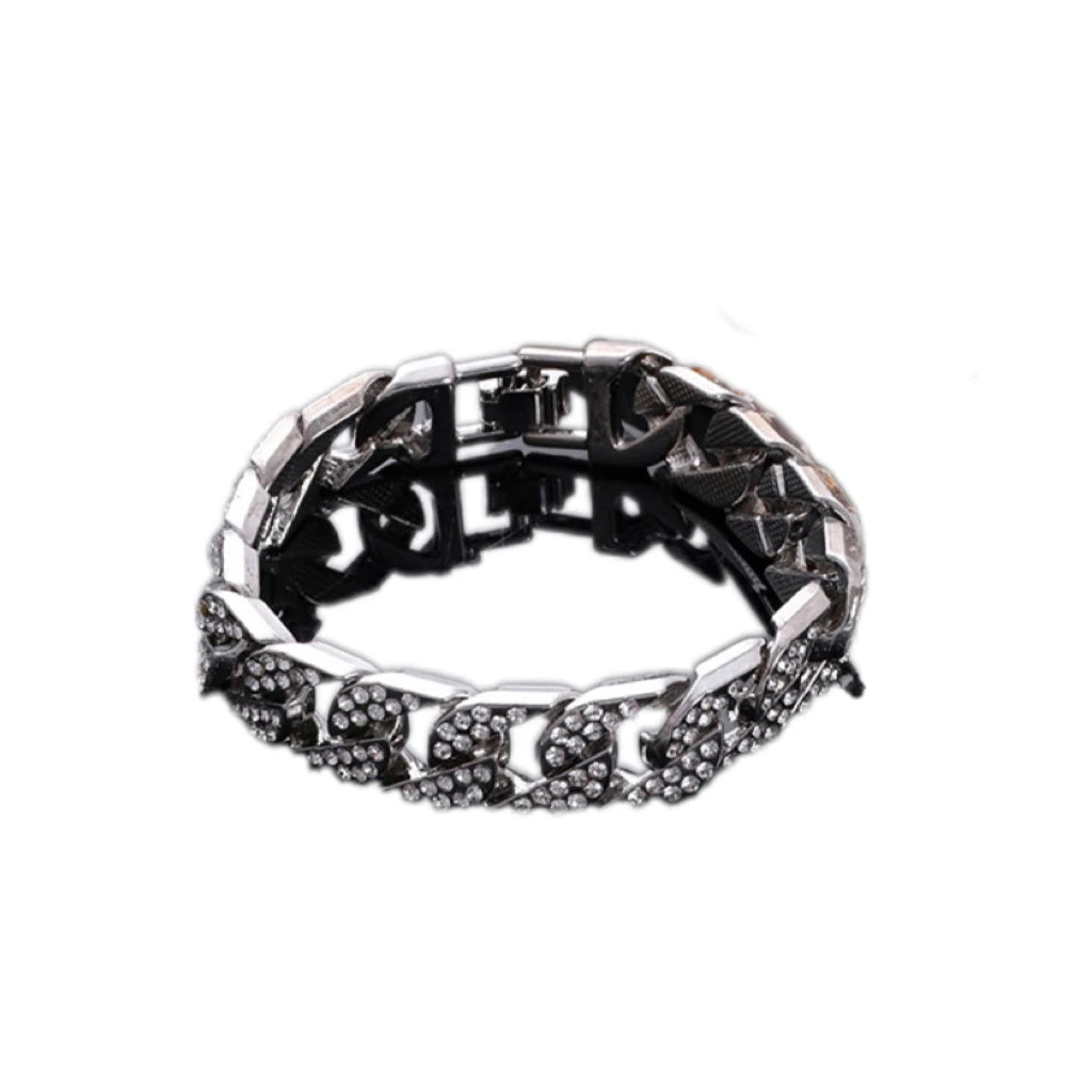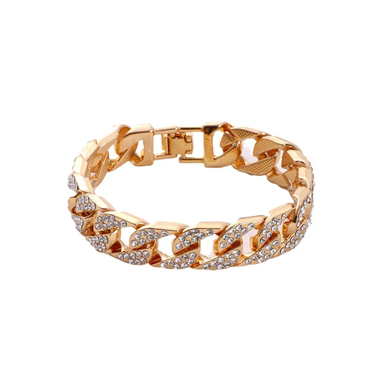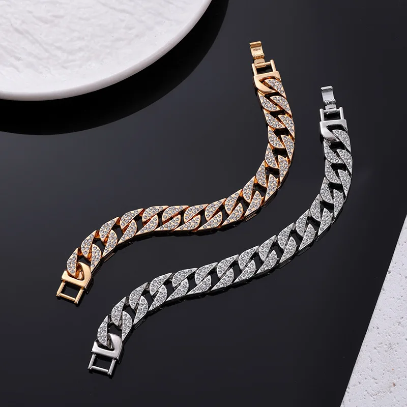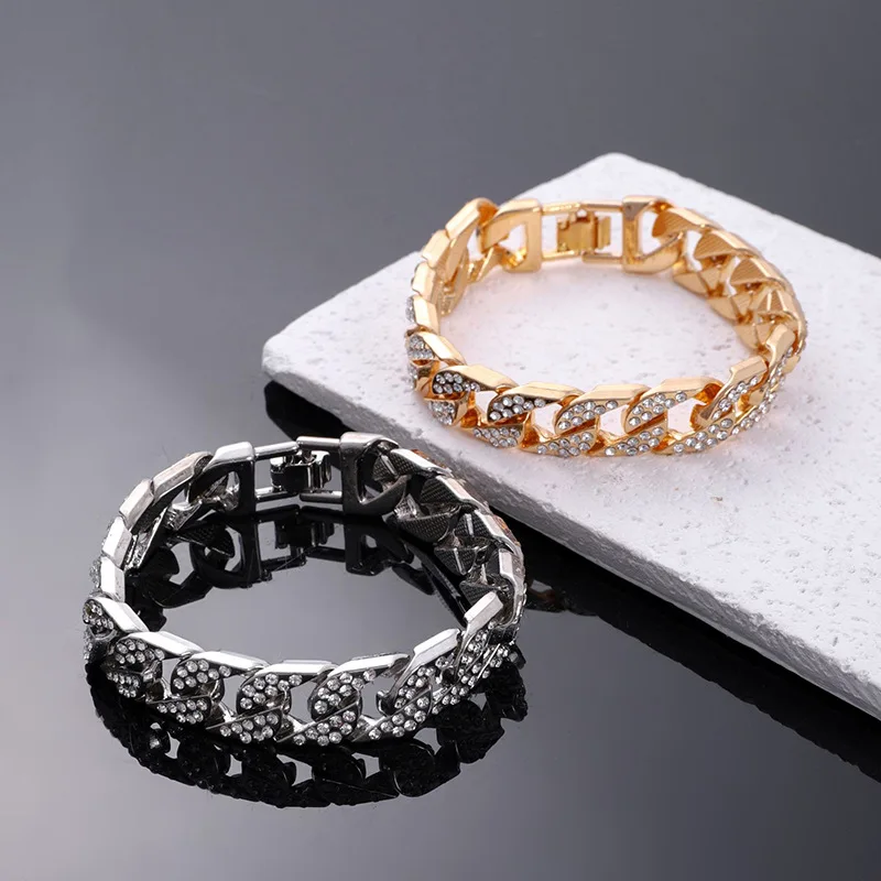 Hip Hop Miami Cuban Rhinestone Bracelet Rapper Shiny Crystal Chunky Bracelet Rock Jewelry Bracelet for Men Women