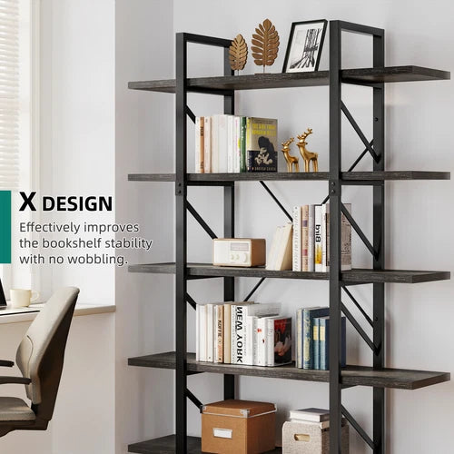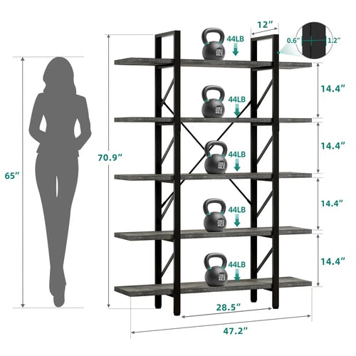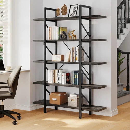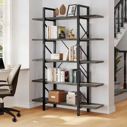 Industrial 5 Tier Bookshelf Bookcase Wide Display Storage Shelves Corner Shelf