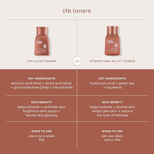 ITK Hydrating Hyaluronic Acid Milky Face Toner for Dry Skin + Redness with Green Tea + Squalane - Prep, Tone + Calm Skin for Women - Soothing Vegan Moisturizing Facial Toner - 5 oz.