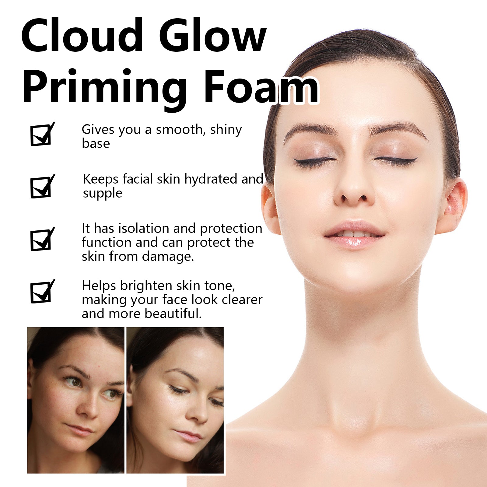 Our hydrating mousse toner contains sodium hyaluronate, coffee extract, hydrolyzed collagen. It can isolate and protect the function of protecting the skin from damage, moisturizing the skin, making the face moist and soft, helping to brighten the skin tone and make your face look clearer and more beautiful. Its use method is very simple: 1. After cleansing and toning, take appropriate amount of this product on the back of the hand. Apply directly to your face with your fingertips and continue. And can give you a smooth, shiny base, keep facial skin hydrated, and provide isolation and protection from damage to the skin. Helps to lighten the skin tone and make your face look clearer and more beautiful.