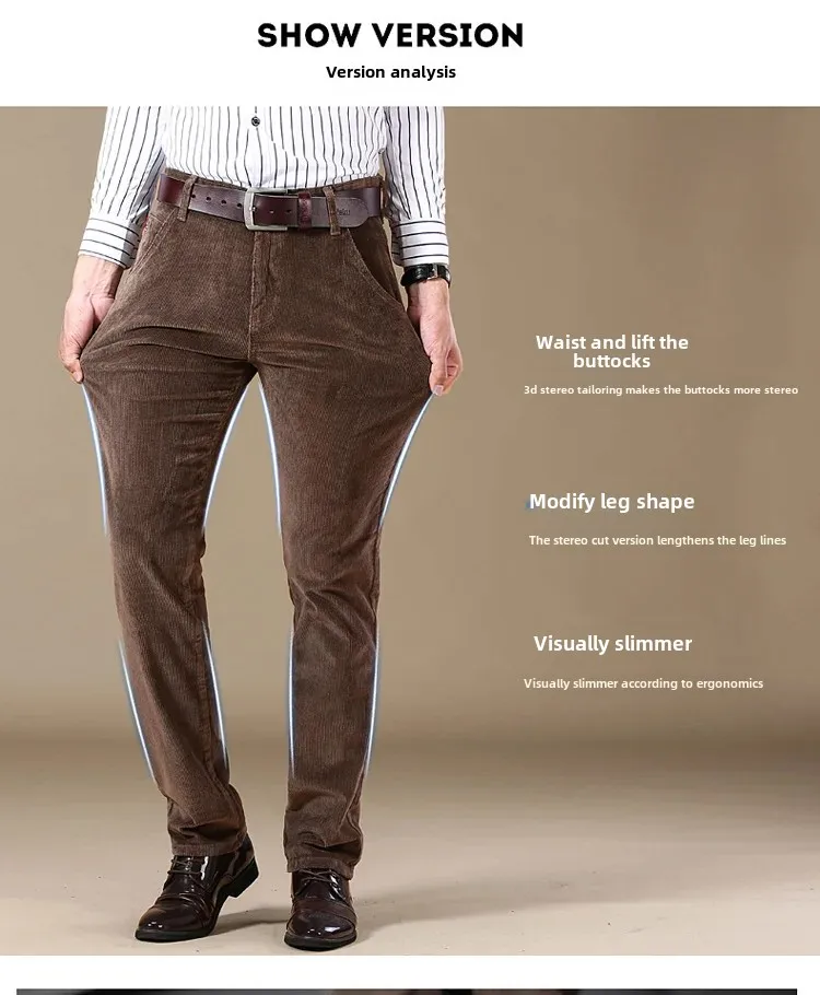• Premium Corduroy Material :Crafted from high-quality corduroy, these pants offer a luxurious feel and long-lasting durability. They're perfect for the winter season, providing warmth and comfort throughout the day.