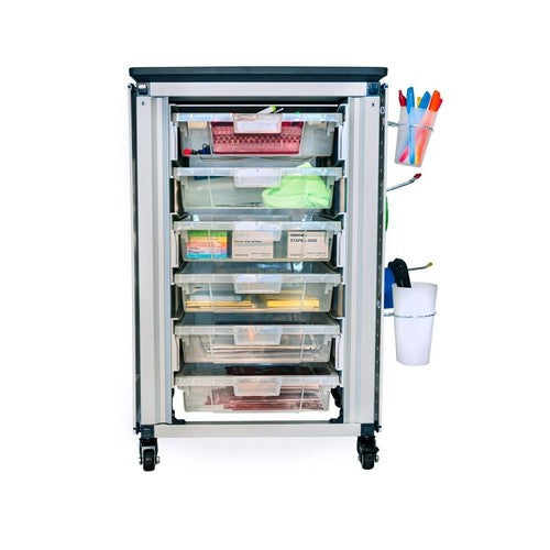 Best of all, the system features Luxor's MBS-series removable and stackable storage bins, which make it a snap to keep classroom supplies readily at hand as teachers move from room to room and students transition from activity to activity. Depending on the cabinet model you select, you get a choice of 6"-deep bins, 3"-deep bins, or a combination of bin sizes.