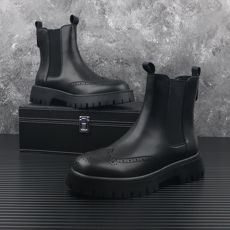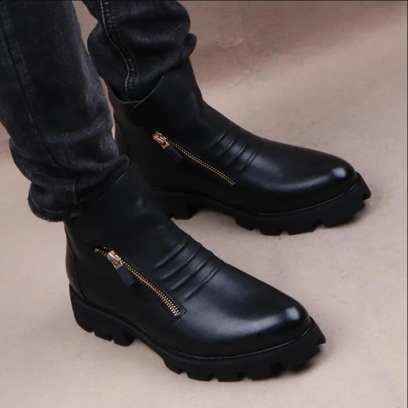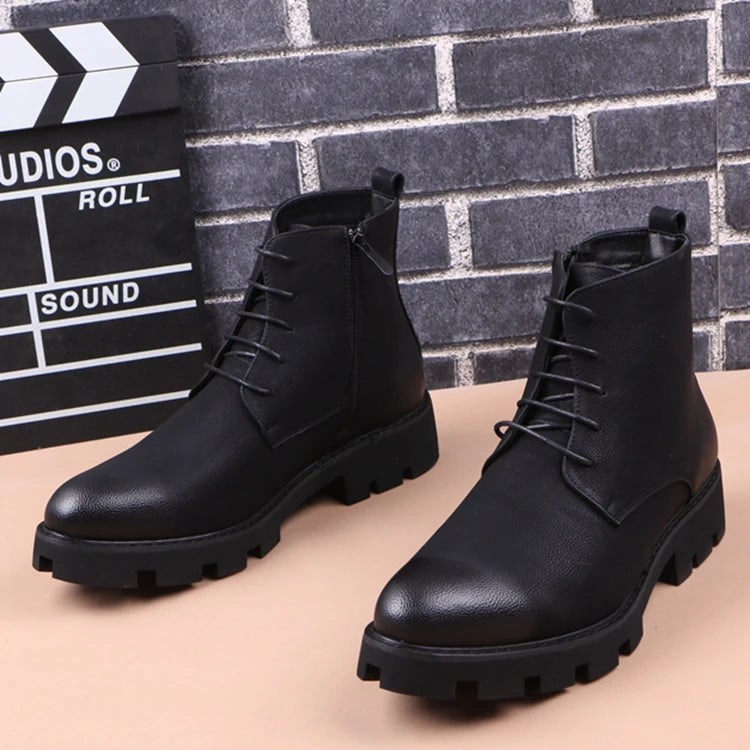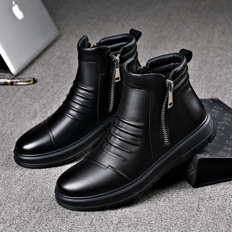new fashion mens platform boots black genuine leather shoes outdoor warm cotton winter snow botte ankle botas de homens sapatos