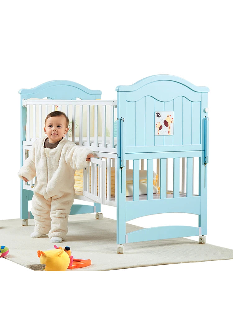 Northward Modern Solid Pine Wood Crib Lacquer-Free Splicing Baby Bed Multifunctional Removable Newborn Cradle Bed for Bedroom