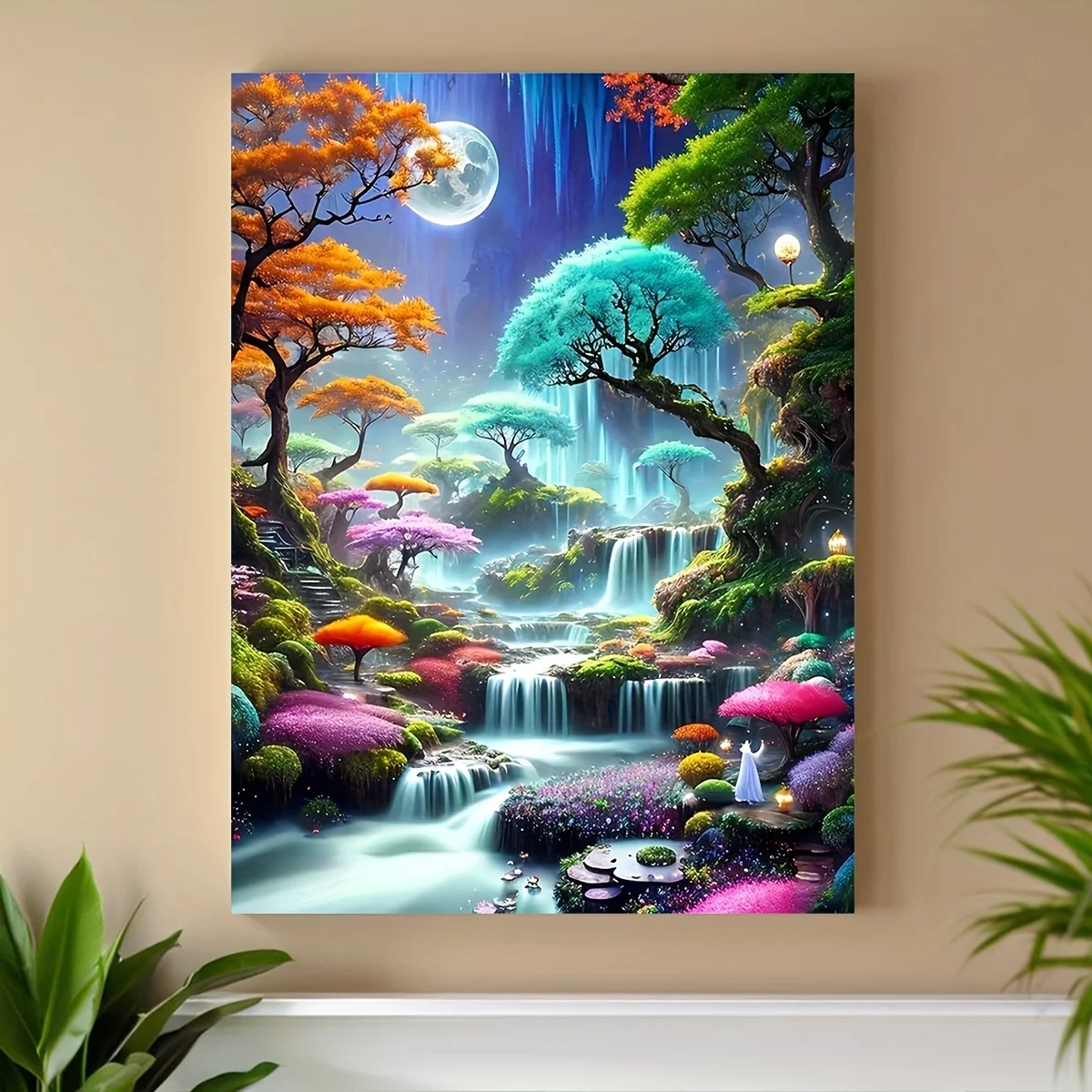 [Print Painting] 1pc Canvas Painting, Christmas, Magic Moon Forest, Fun Creative Wall Decor, 12x16 inches, Frameless, No Frame