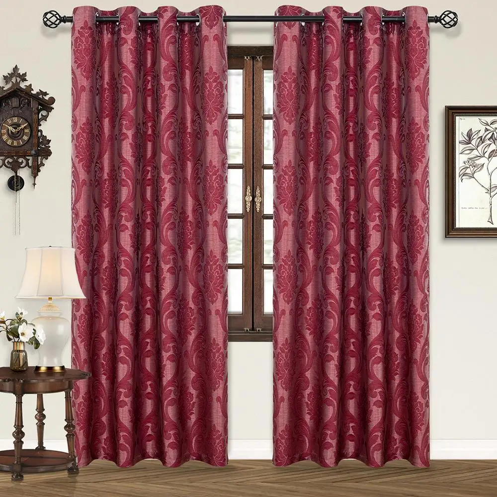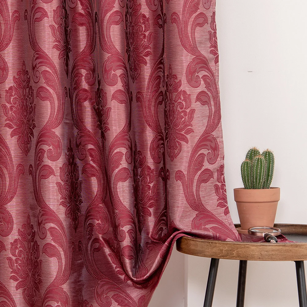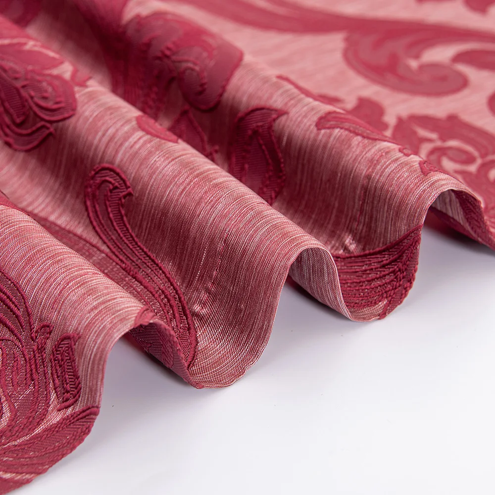 Red Semi Blackout Jacquard Curtains for All Rooms