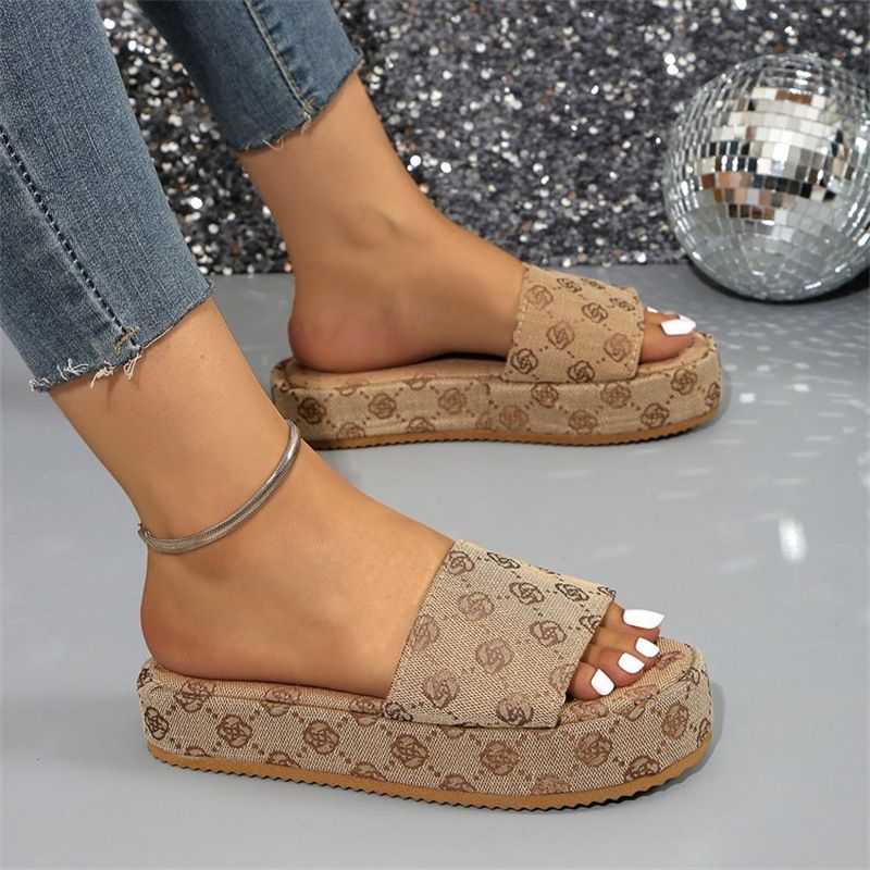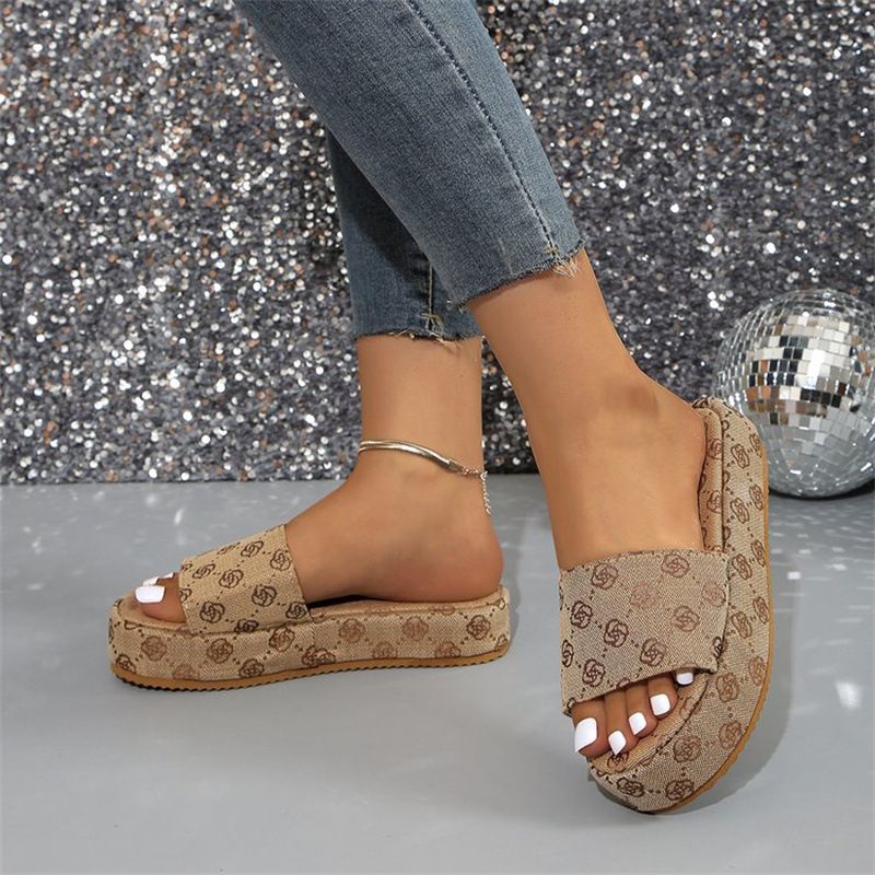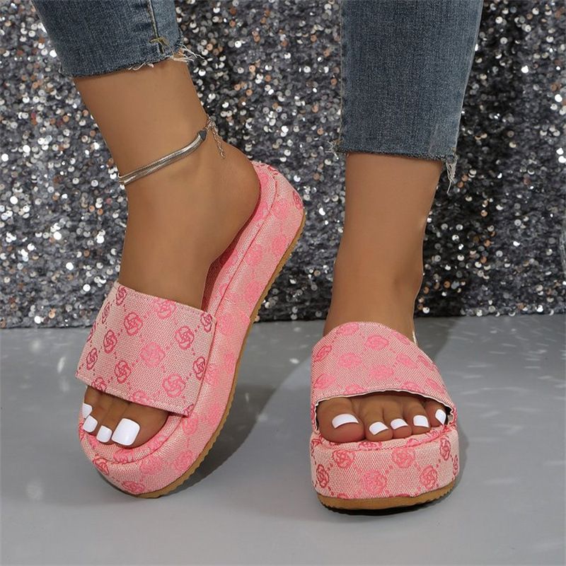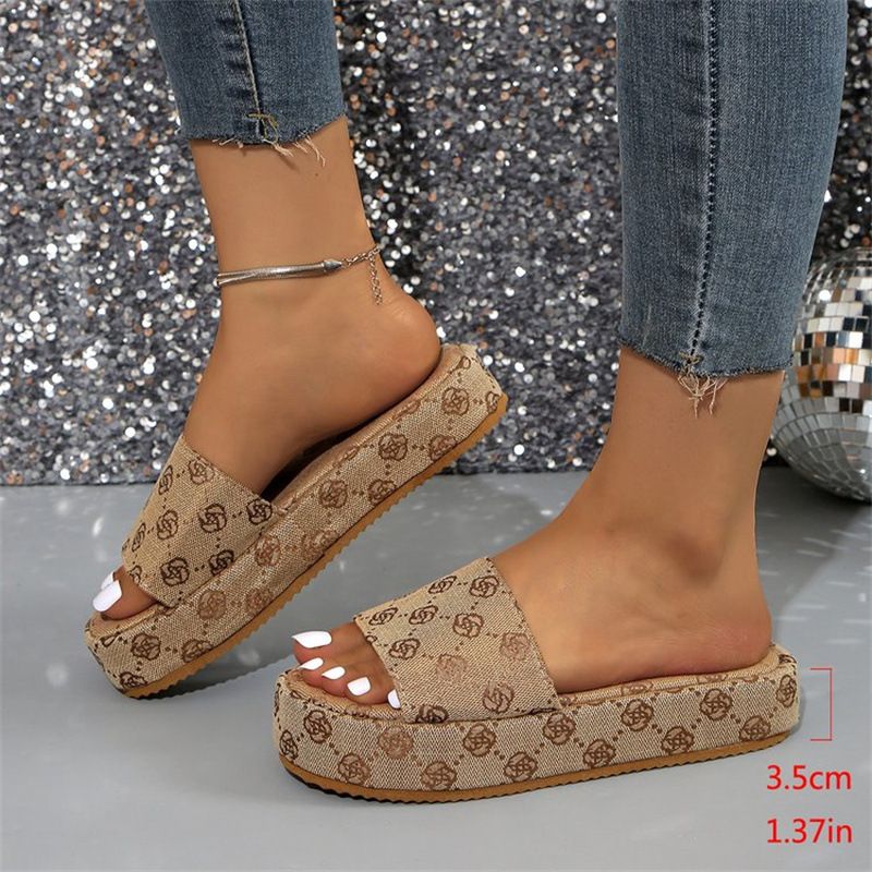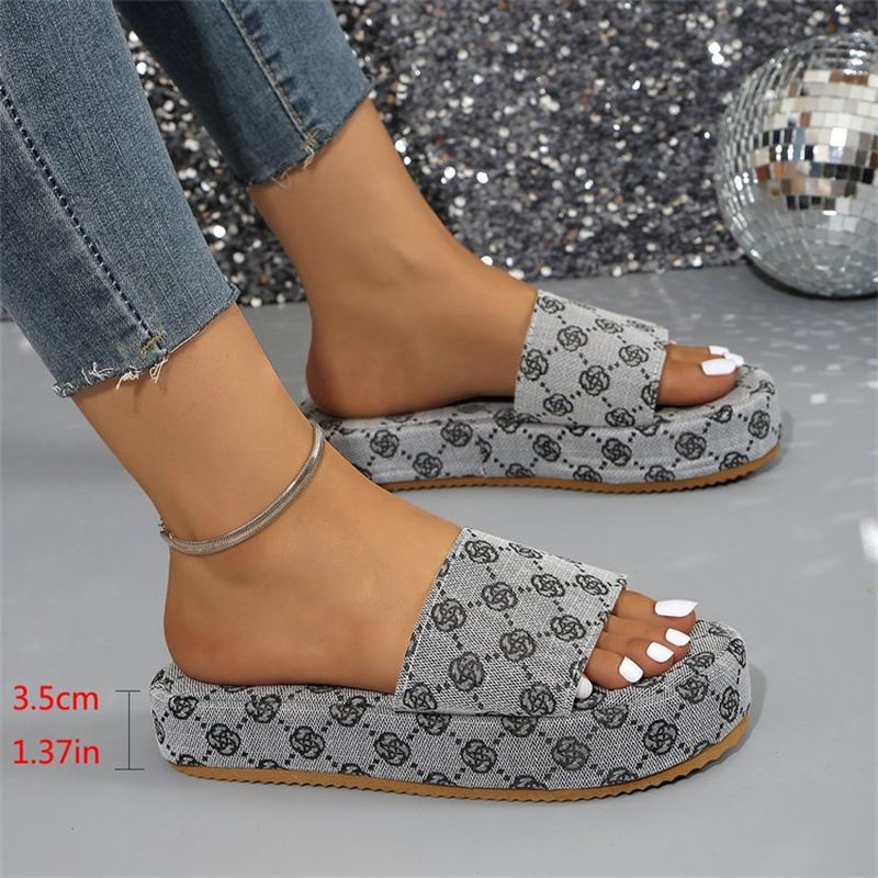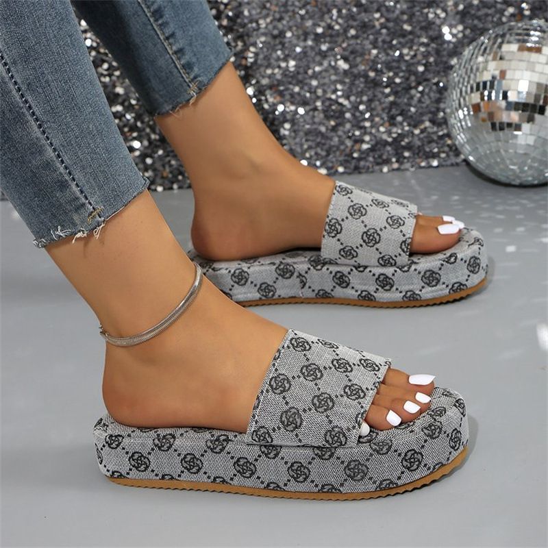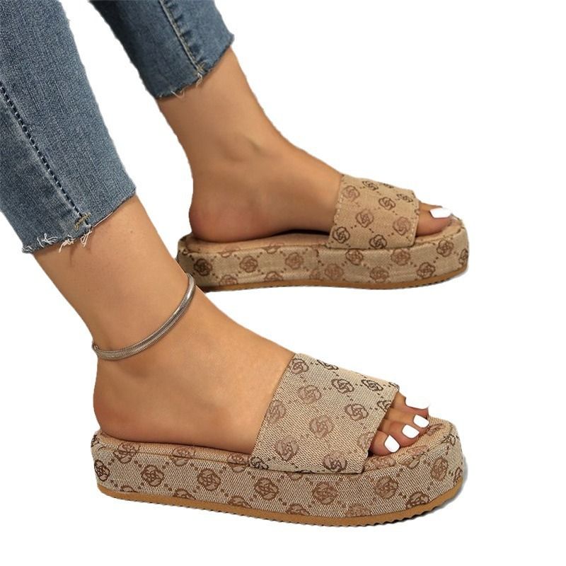 Slippers foreign trade large size thick soled women's slippers 2024 new style plum blossom embroidery platform bottom casual women's sandals