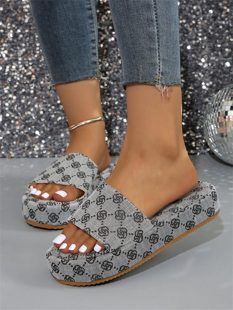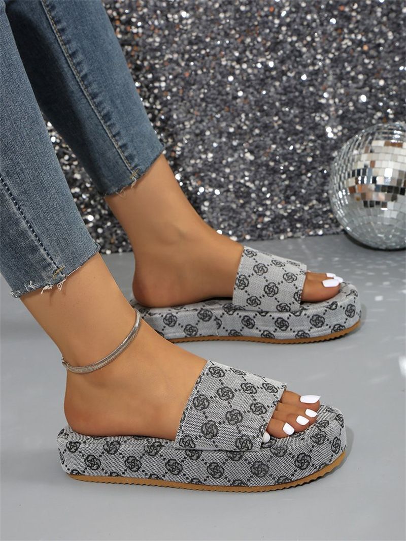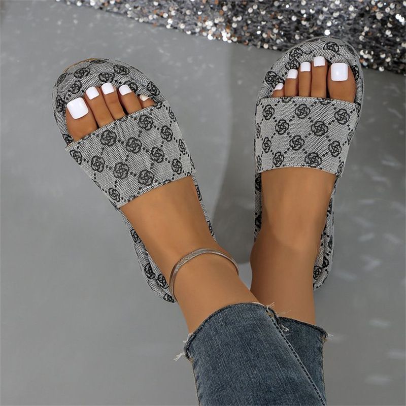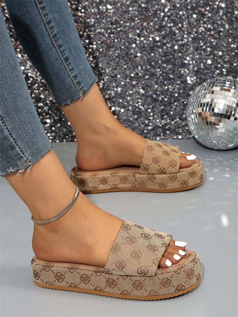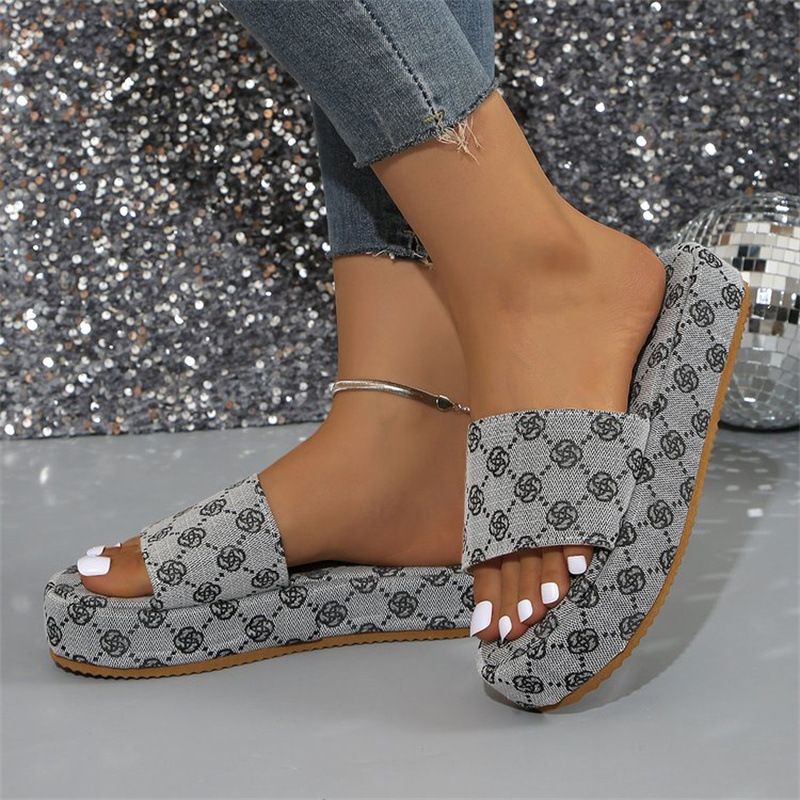 Slippers foreign trade large size thick soled women's slippers 2024 new style plum blossom embroidery platform bottom casual women's sandals