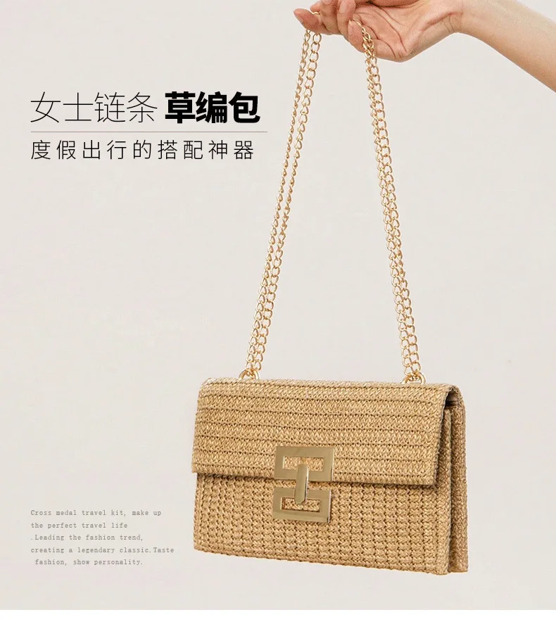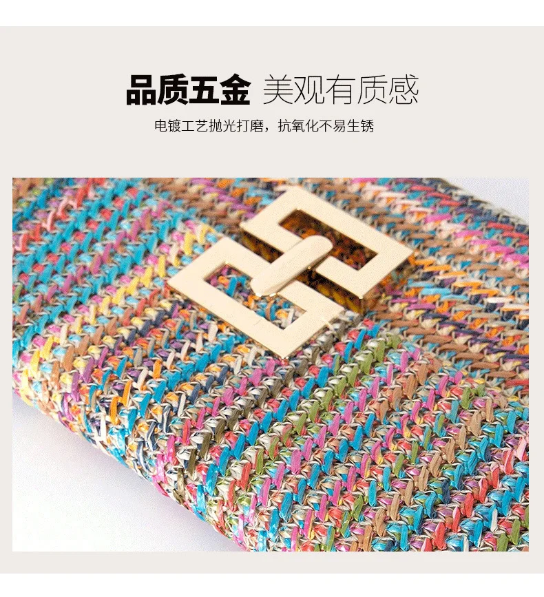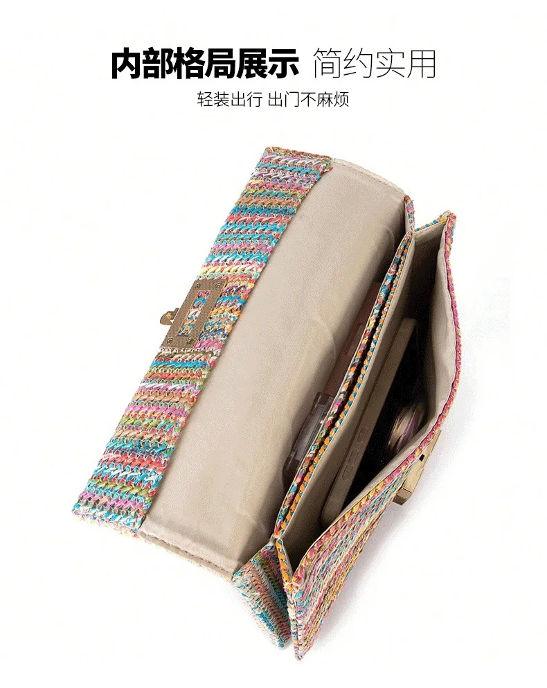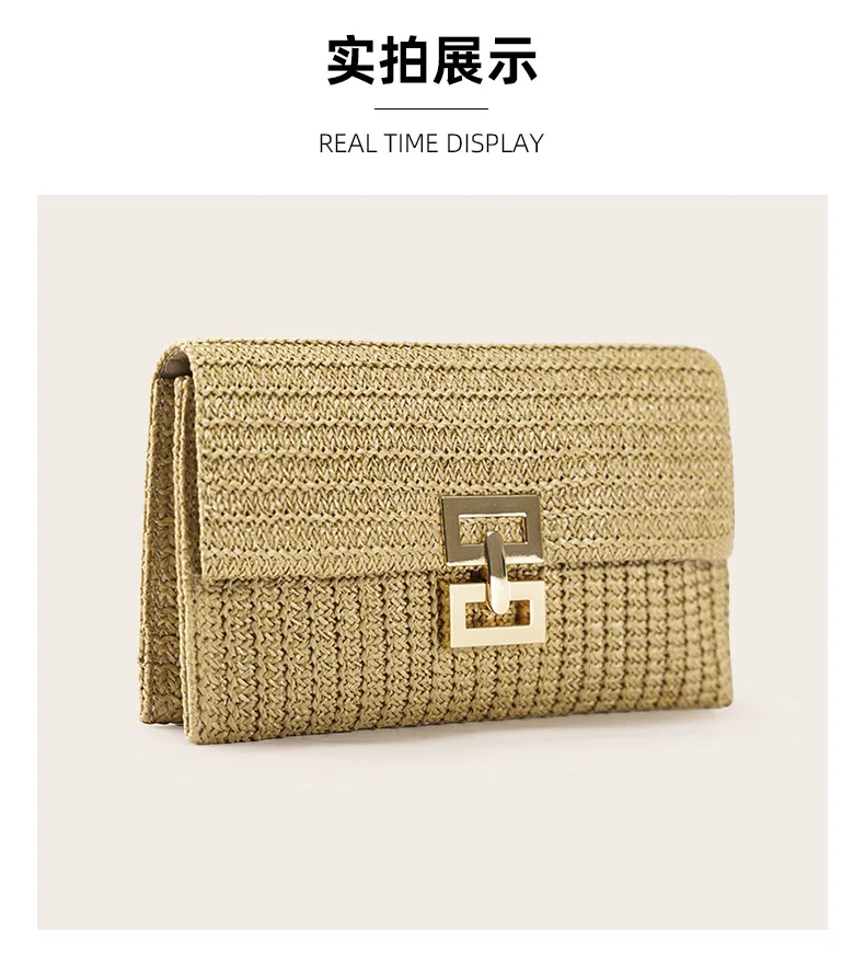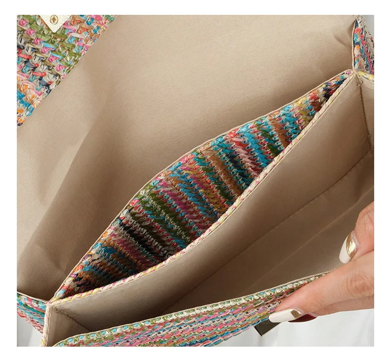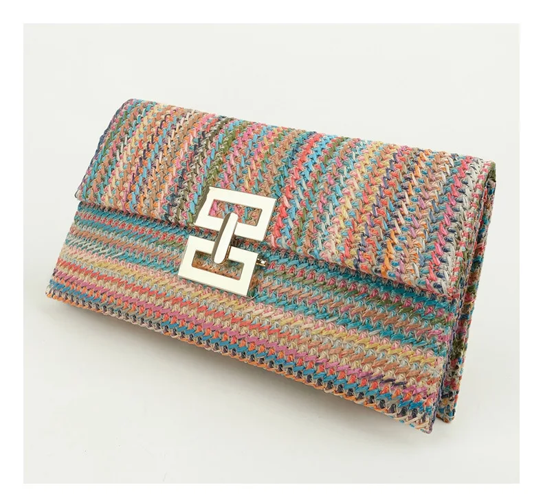 Summer Straw Envelope Beach Bag Fashion Raffia Evening Party Handbag Women Weave Pattern Clutch Messenger Purses Lady Wallet