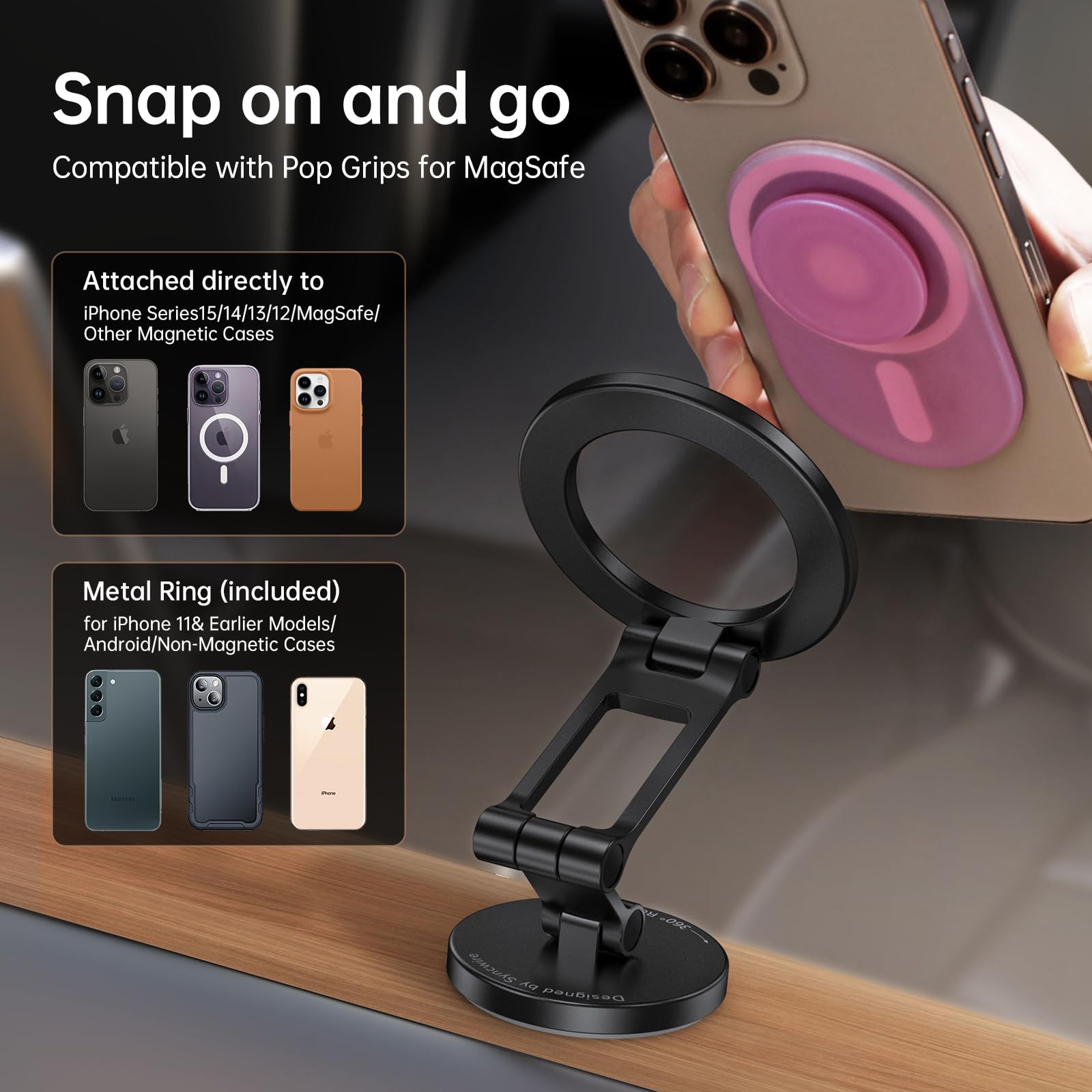• 【Ring Vent Design】The magnetic mount features a ring vent design, directing cool air from the vent to help dissipate heat from the phone. It is also compatible with Pop Grips featuring MagSafe functionality, allowing direct use without removing the magnetic ring.