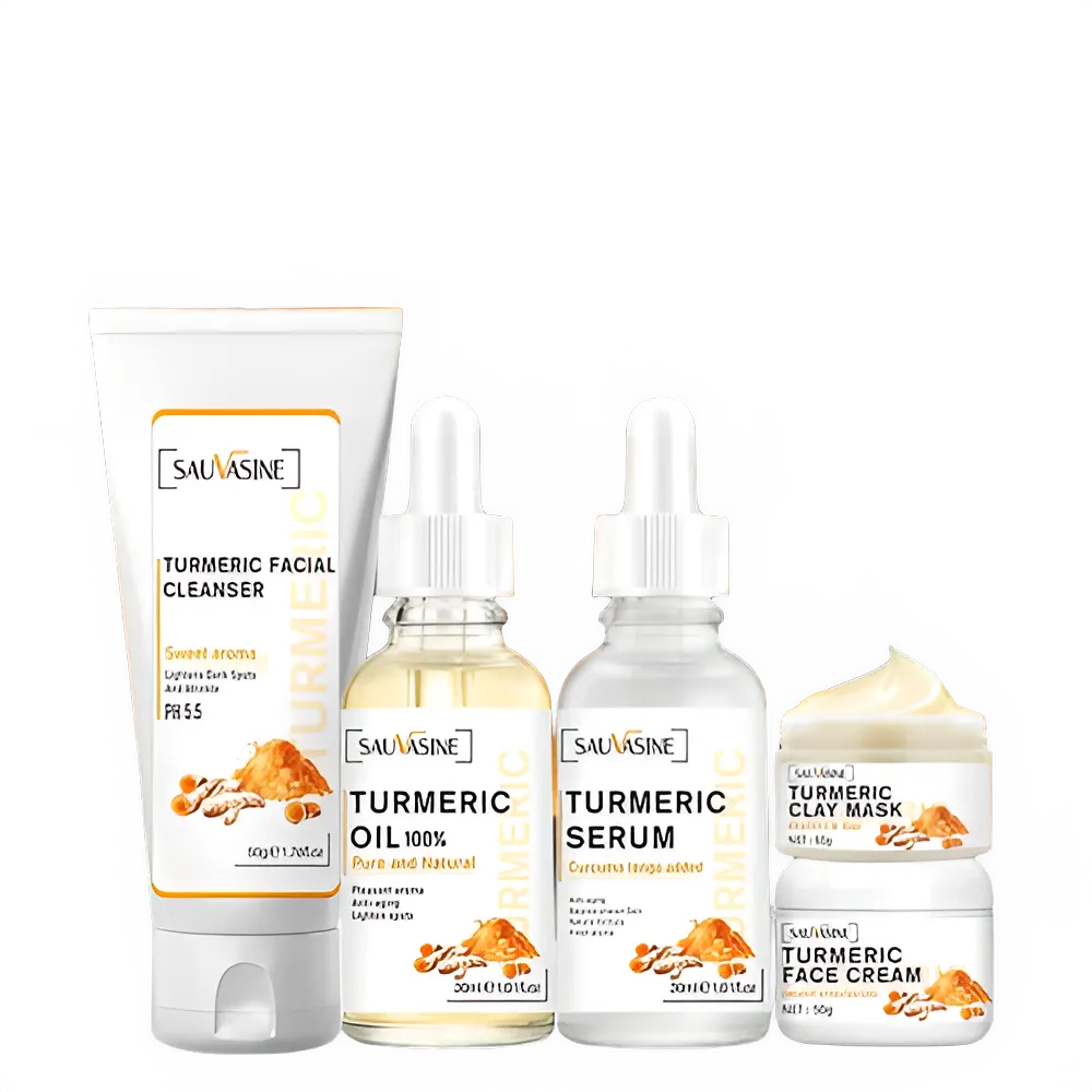 ✨ Discover the ultimate skin care solution with our Turmeric Lemon Skin Care Set, designed to brighten your skin and combat acne and dark spots! This premium set includes a facial cleanser, clay mask, serum, oil, and face cream, each infused with the powerful benefits of turmeric for a glowing complexion.