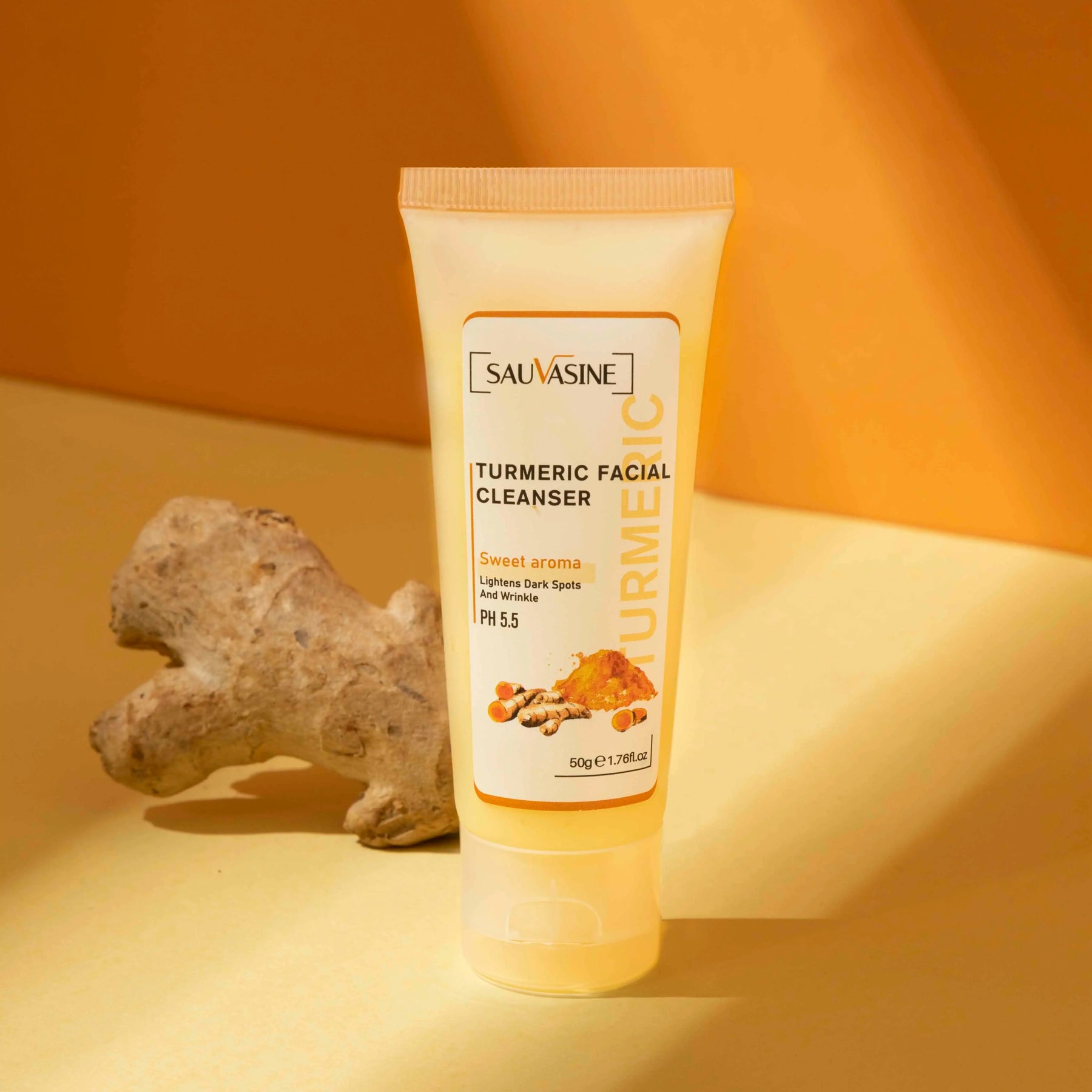 1. Start with the Turmeric Facial Cleanser to remove impurities.