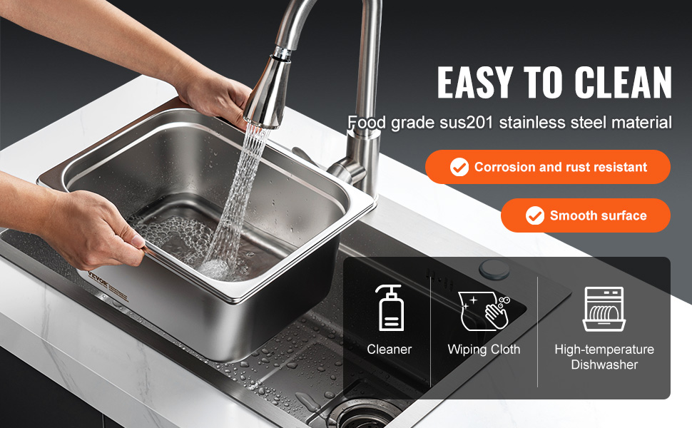 The hotel pan is made from high-quality, food-grade stainless steel, capable of withstanding high temperatures and freezing. They are suitable for ovens, steam table warmers, refrigerators, and freezers, perfect for storing and cooking food.