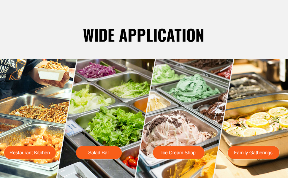 Stainless steel table pan for industrial & scientific can hold various foods such as meats, vegetables, fruits, and ice cream. They are perfect for your restaurant, salad bar, ice cream shop, and family gatherings.