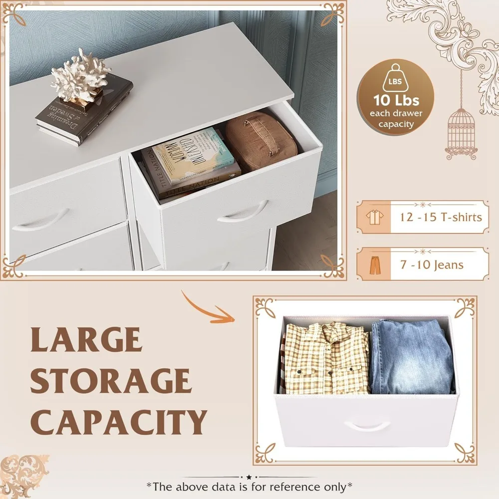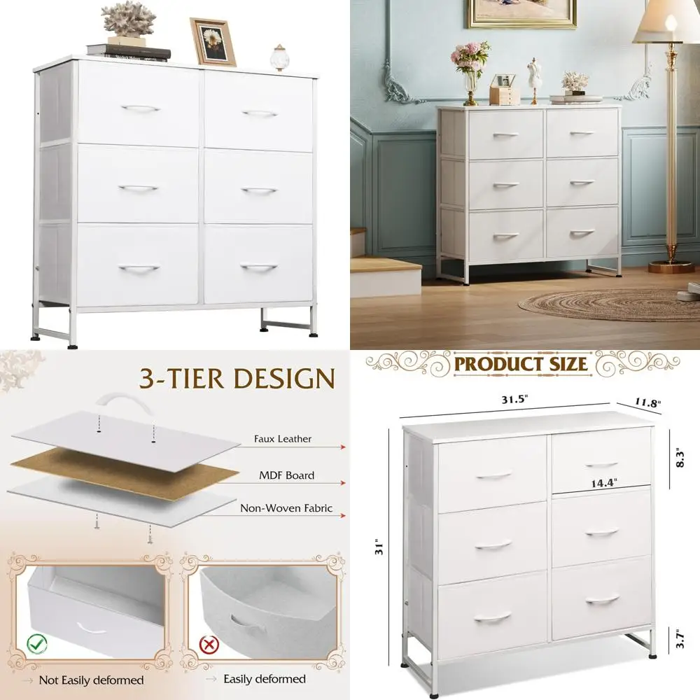 - 6 Drawer Chest: The Chest of Drawers features easy-to-pull arch handles, storage drawers made of high-quality non-woven fabric, and 4 adjustable feet that protect floor from scratches.