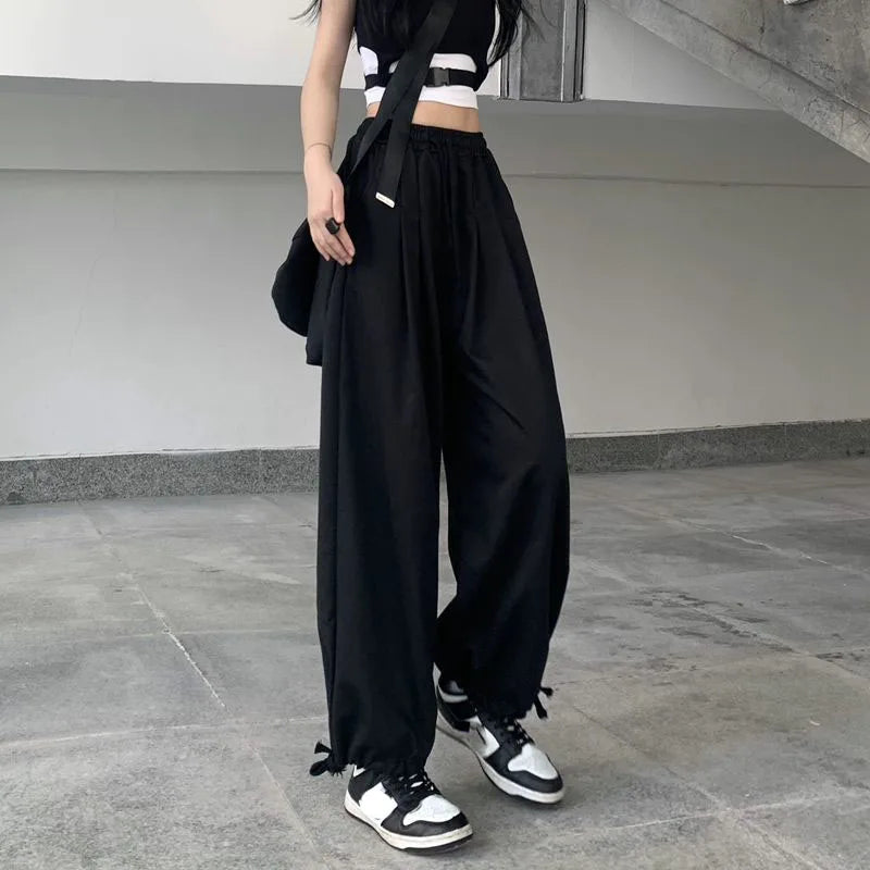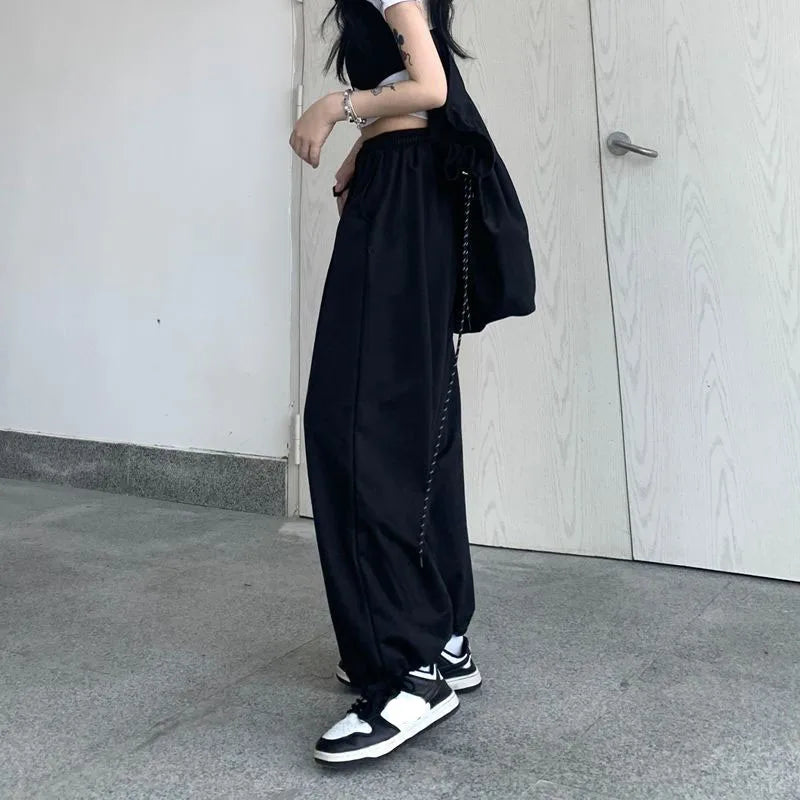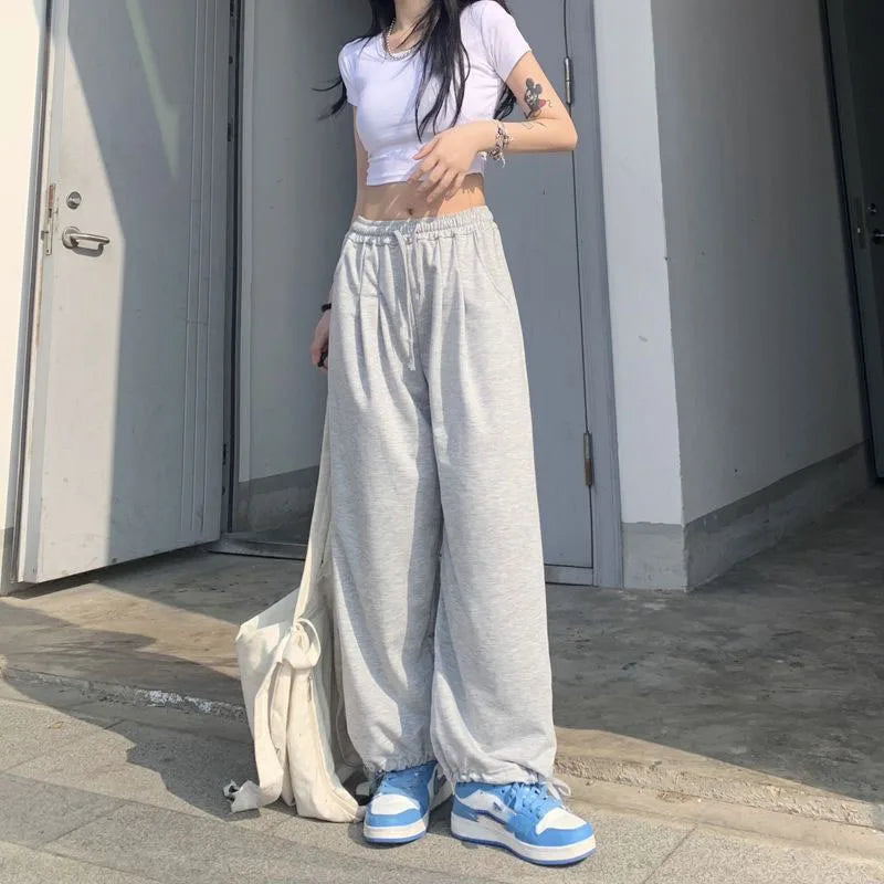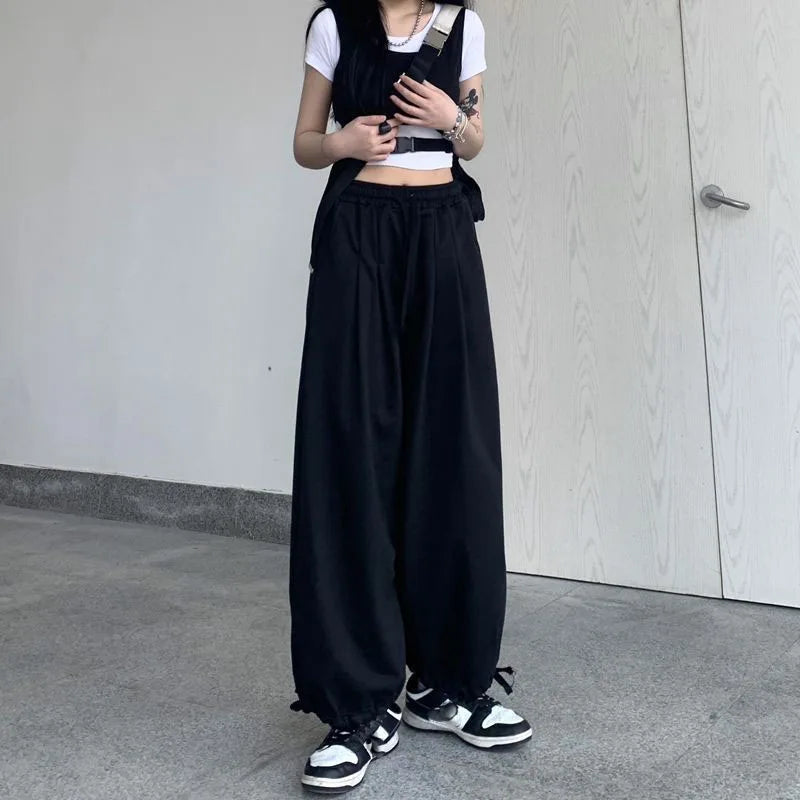 Women Retro Baggy Joggers Pants Solid Oversized Drawstring Y2K Sweatpant Woman Trendy Casual Versatile Harem Pants 2025 New