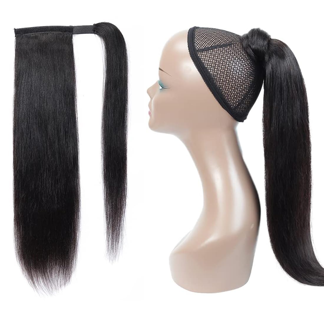 Wrap Around Ponytail Human Hair Ponytail Extension Straight Ponytail with Magic Paste Human Hair Ponytail for Black Women Straight Ponytail Extension Human Hair Natural Color 24 Inch