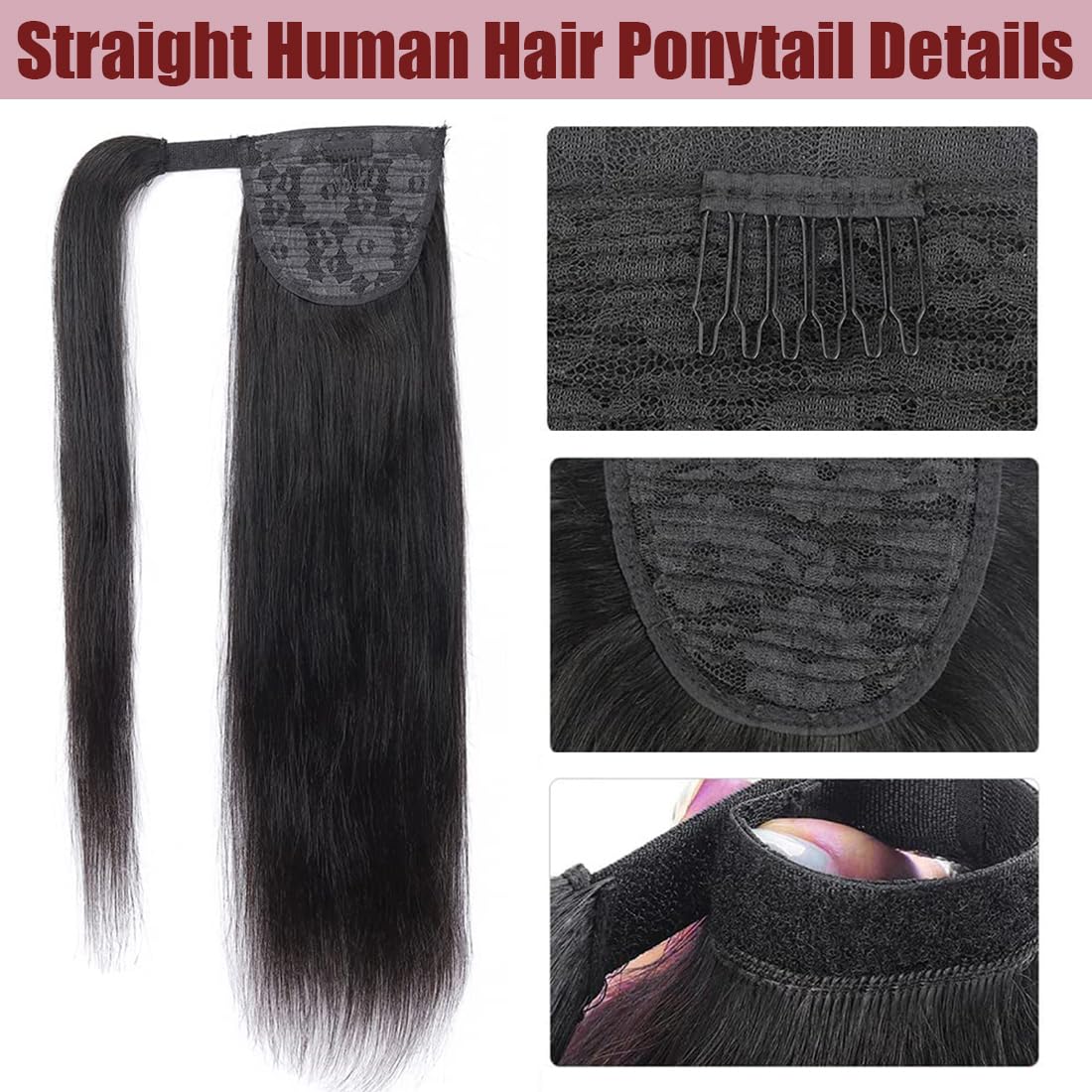 • Ponytail Advantage: Wrap Around Ponytail Human Hair, Straight Ponytail Extension with Magic Paste and Clip Comb, Easy to Wear and Adjust.